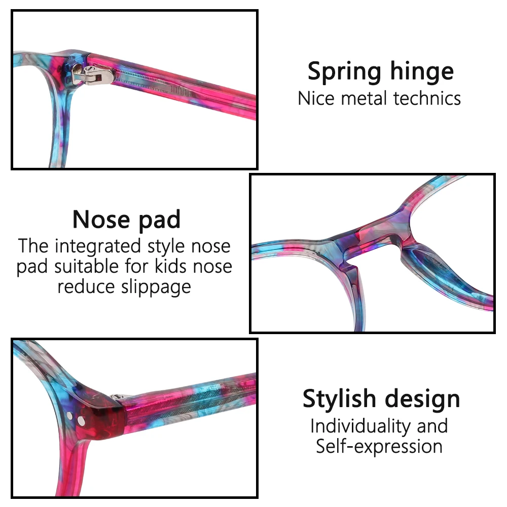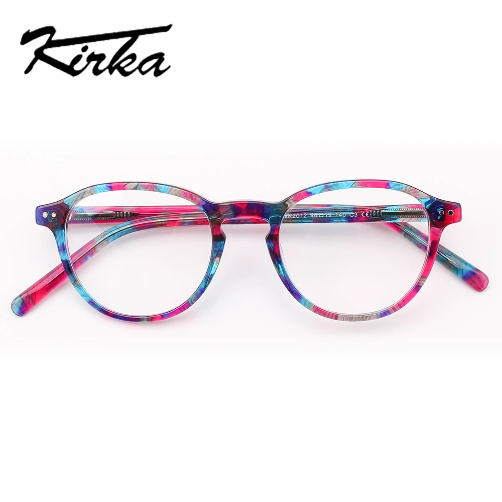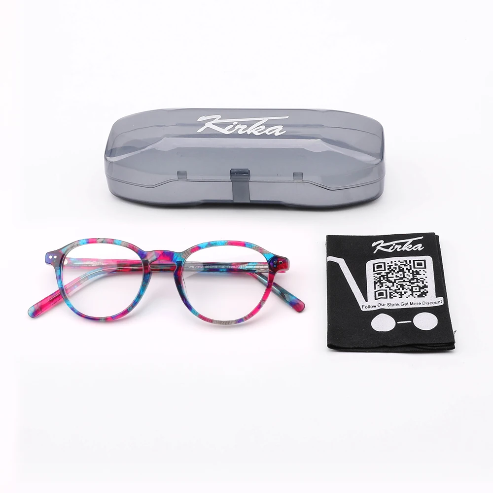 Kirka Kids Glasses Acetate Frames Round Lens Child Optical Eyewear Boys and Girls Myopia/Anti-blue Glasses Frame Floral pattern