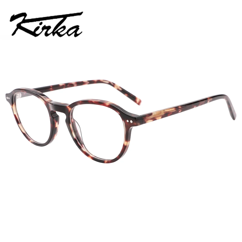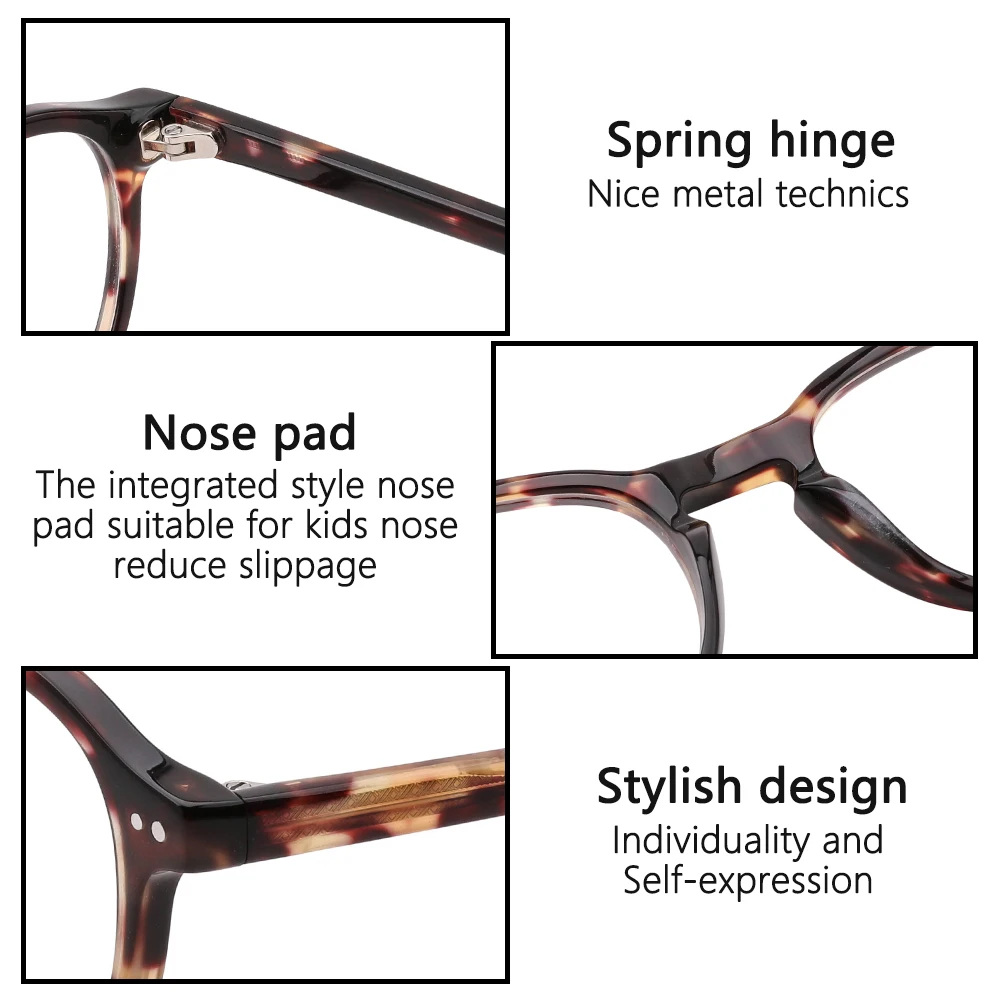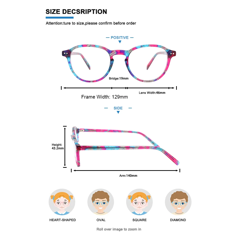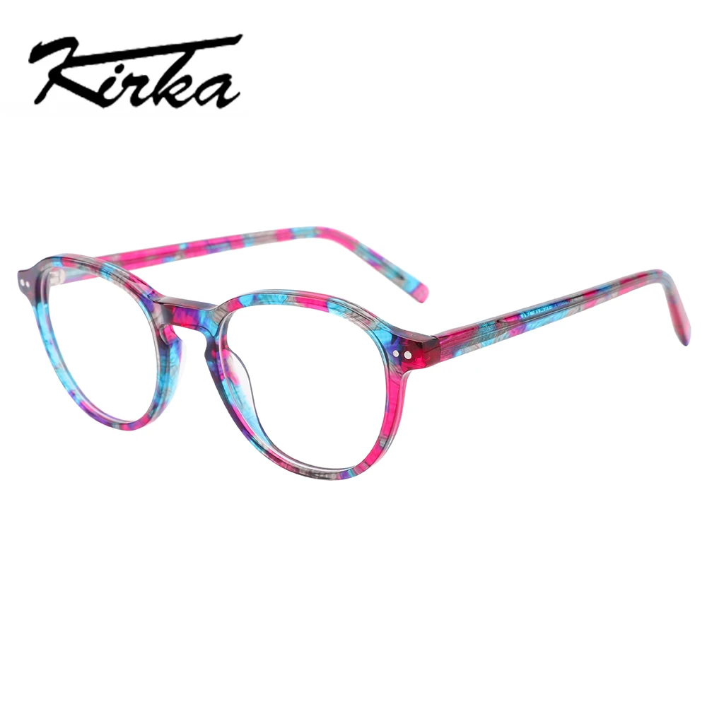 Kirka Kids Glasses Acetate Frames Round Lens Child Optical Eyewear Boys and Girls Myopia/Anti-blue Glasses Frame Floral pattern