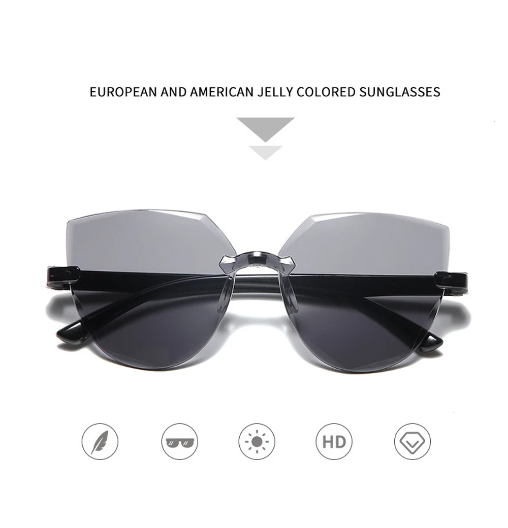 Ladies Cat Ear Sunglasses Frameless Jelly Transparent Sunglasses Retro All-in-one Ocean Piece Candy Color Sunglasses