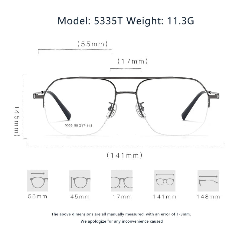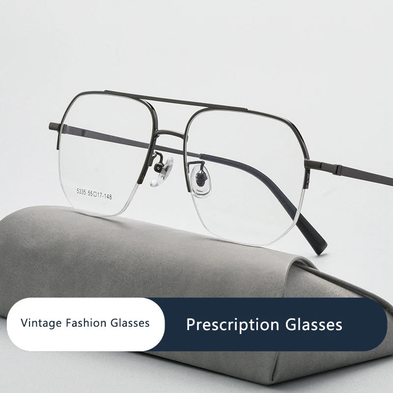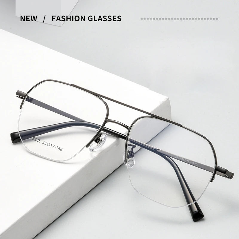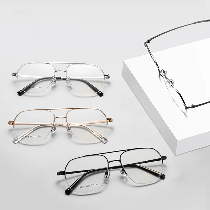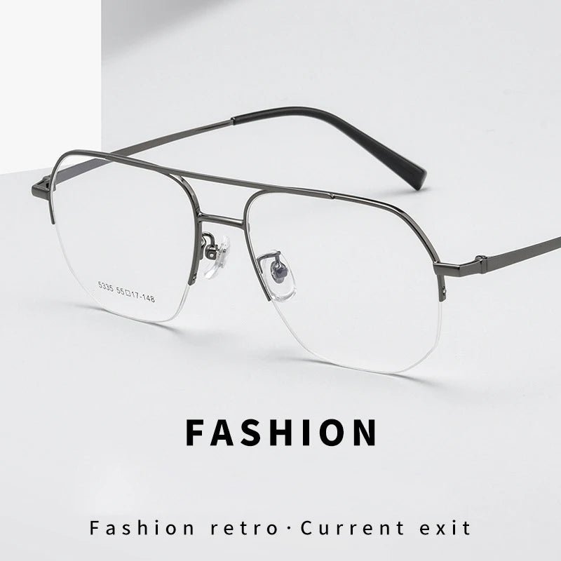 Large Size Eyeglasses Man Retro Ultra Light Alloy Eyewear Pilot Double Bridge Glasses Optical Prescription Frame Woman