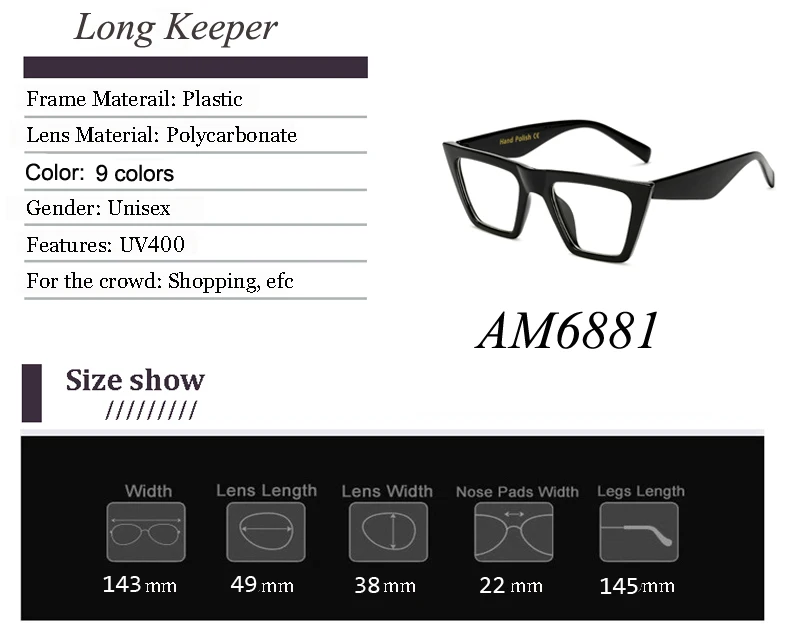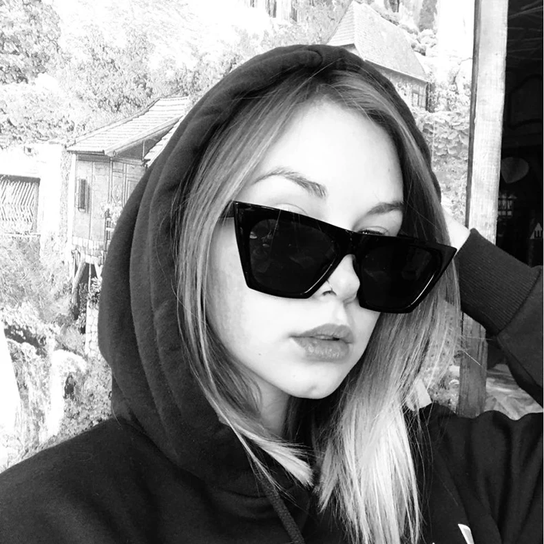 Long Keeper Women Sunglasses Square Cat Eye Sun Glasses Female UV400 Summer Style Vintage Black Big Frame Eyewears