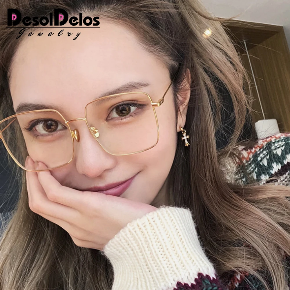 Luxury Women Square Eyeglasses Vintage Glasses Optical Frame Gold Metal Unisex Spectacles Clear Lens Glasses Blue Light Glasses