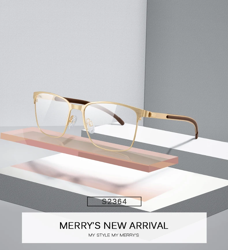 MERRYS DESIGN Men Titanium Alloy Glasses Frames Ultralight Square Myopia Prescription Optical Eyeglasses Antiskid Silicone S2364
