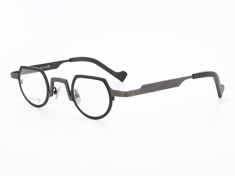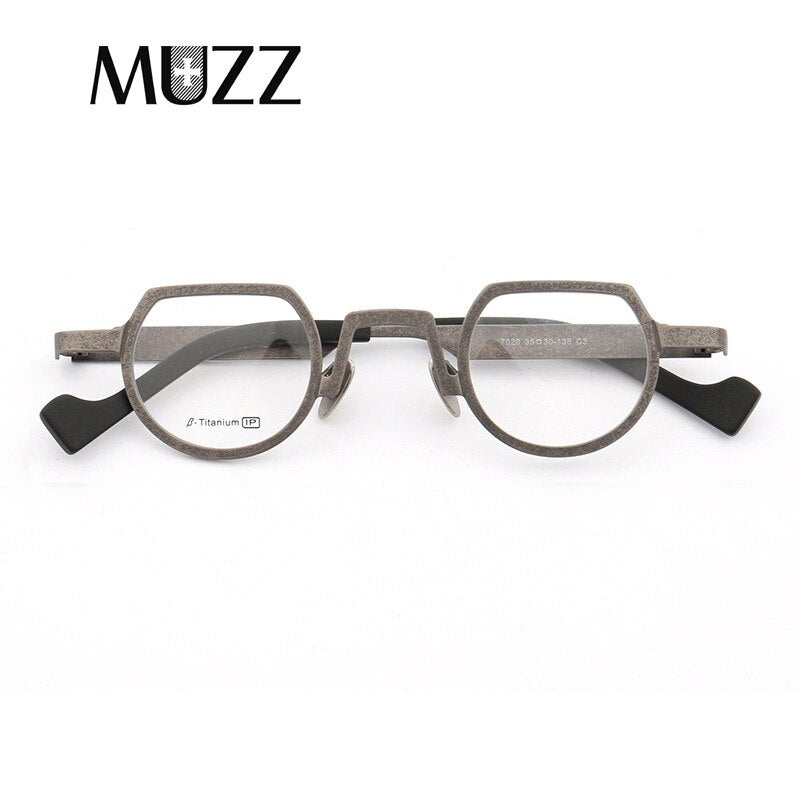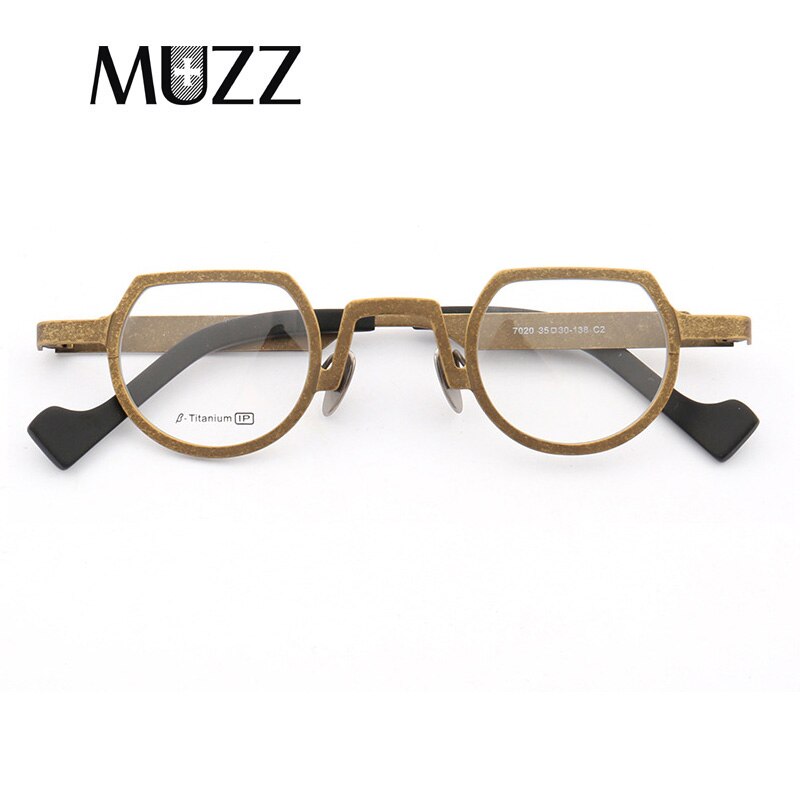 MUZZ Pure Titanium Frames Men's Optical Irregular Small full rim Eyeglasses Frame high myopia Prescription Clear Lens Glasse