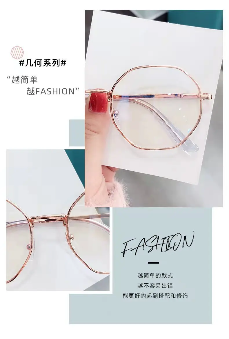 Myopic eye frame female Korean version tide degree polygonal net red eye flat lens anti blue radiation eye frame