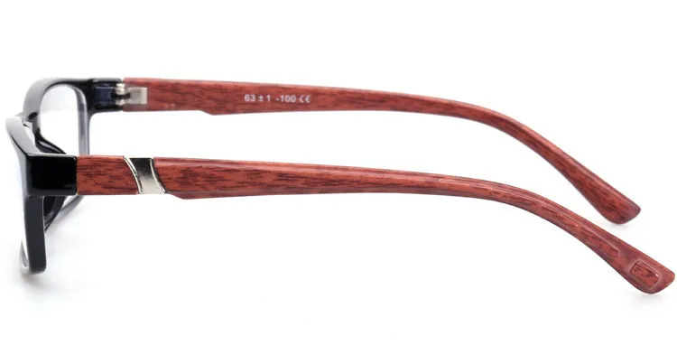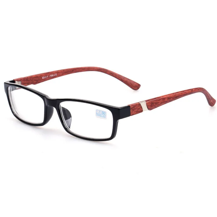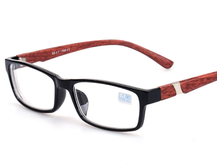 Nerd Finished Men Women Myopia glasses bright black frame and red wood pattern legs  -100 -150 -200 -250 -300 -350 -400