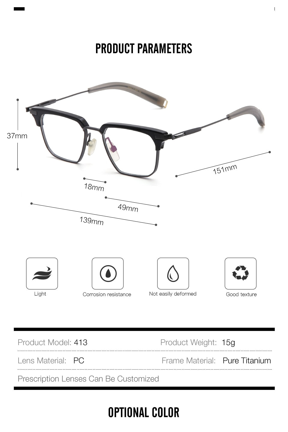 Pure Titanium Men Glasses Frames Square Myopia Optical Prescription Eyeglasses Frames Woman Business Face Eyewear
