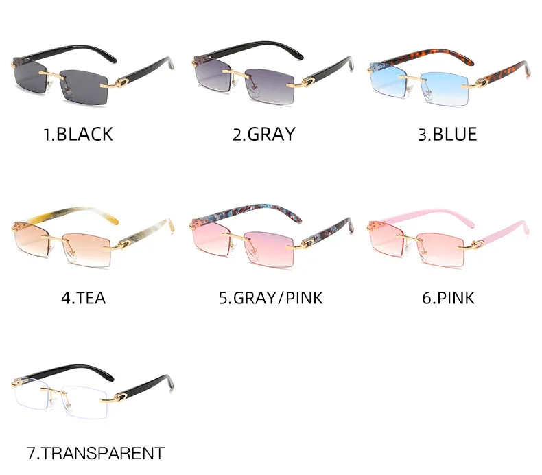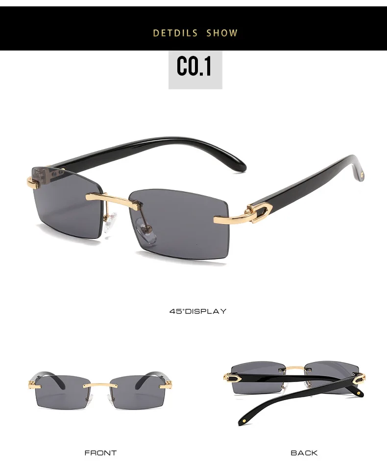 Rectangle Punk Rimless Sunglasses Men Women Vintage Shades UV400 Driving Sun Glass Frameless Gradient Eyewear