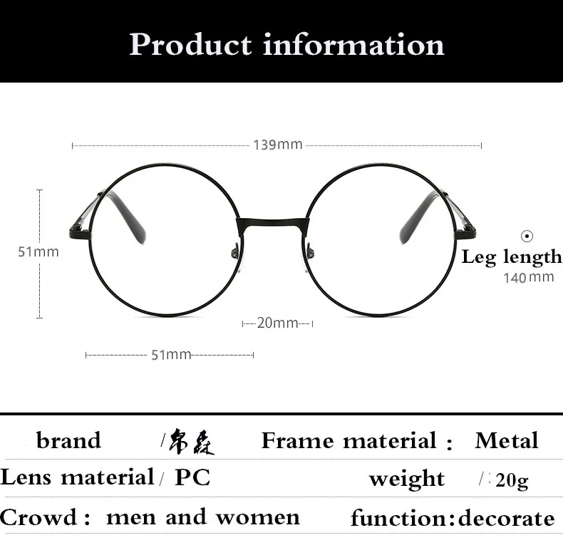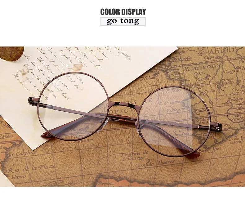 Retro-classic transparent lens metal frame men and women circular reading glasses retro-personality college style