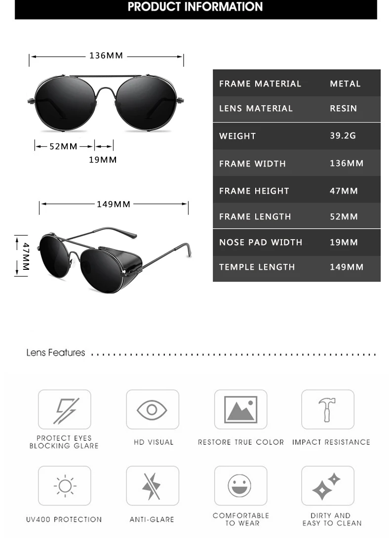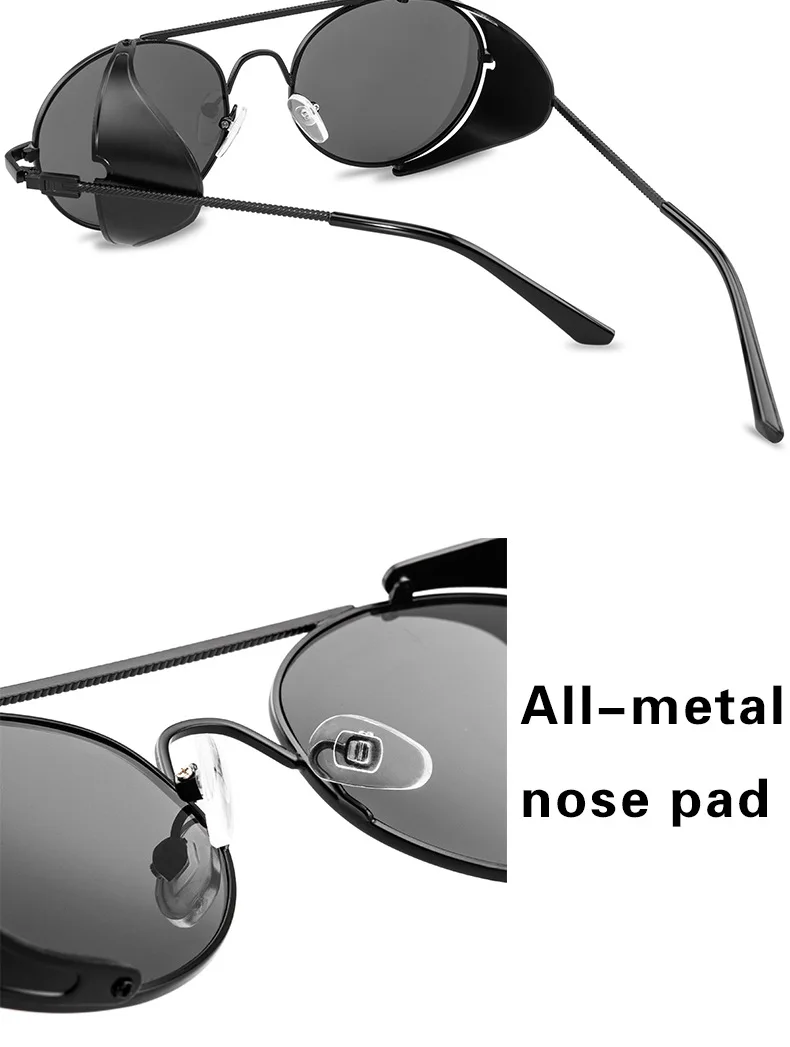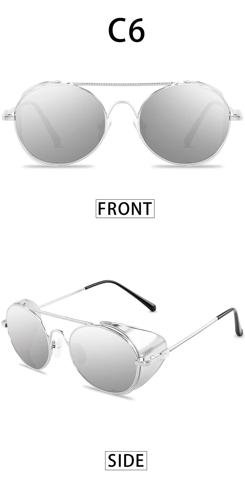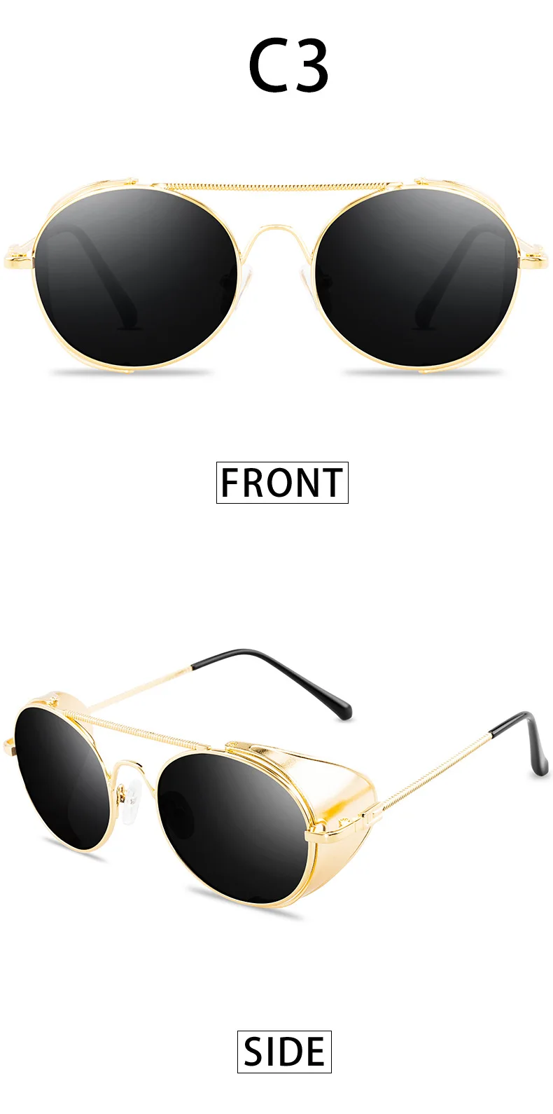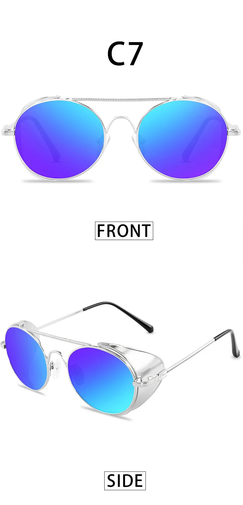 Retro gothic Steampunk Style Round Metal Frame Sunglasses Men Women  Brand Designer Shields Lens Sun Glasses Gafas de Sol