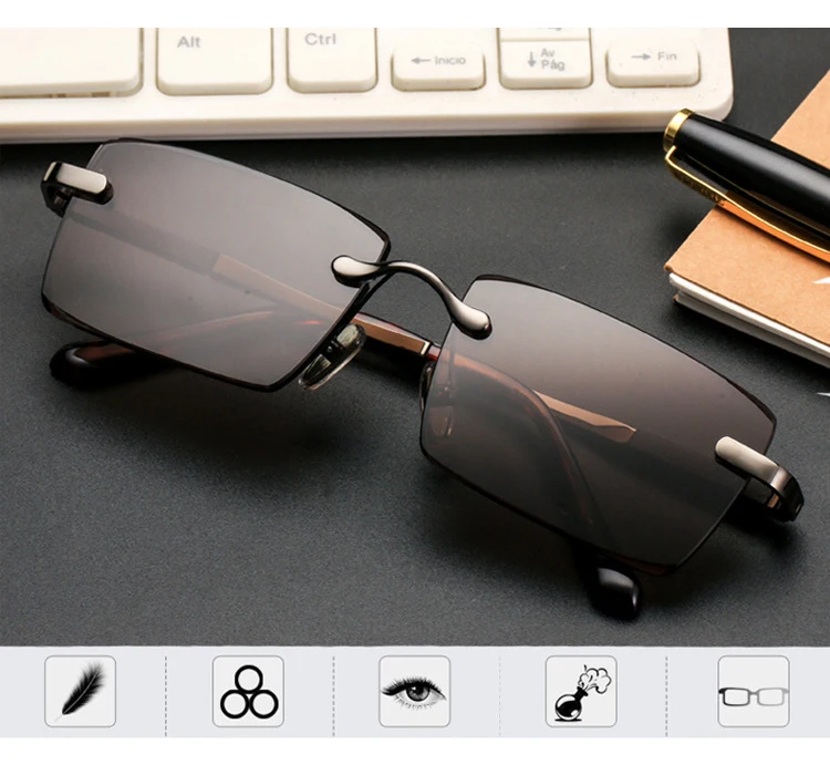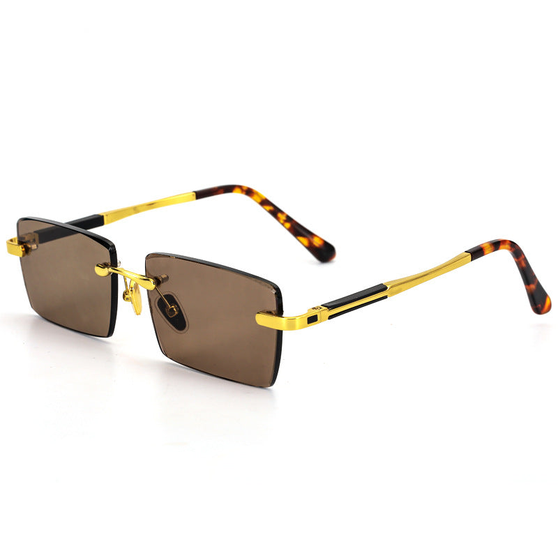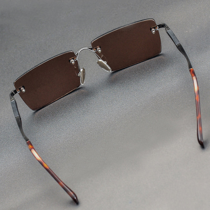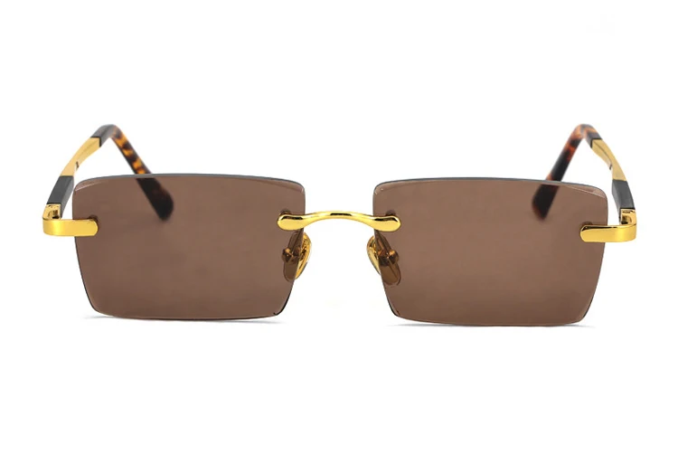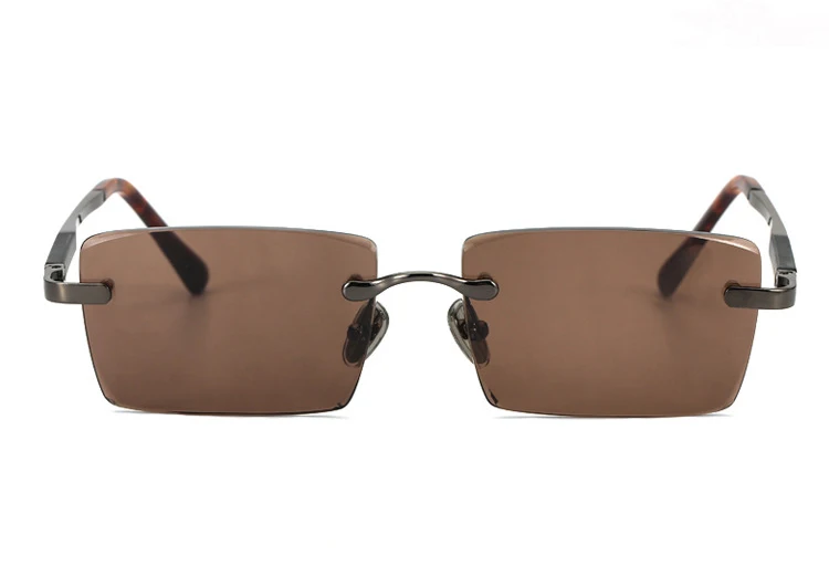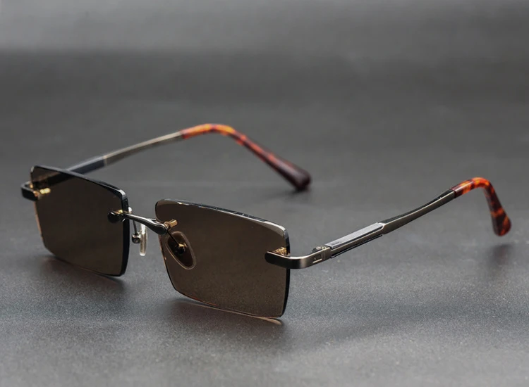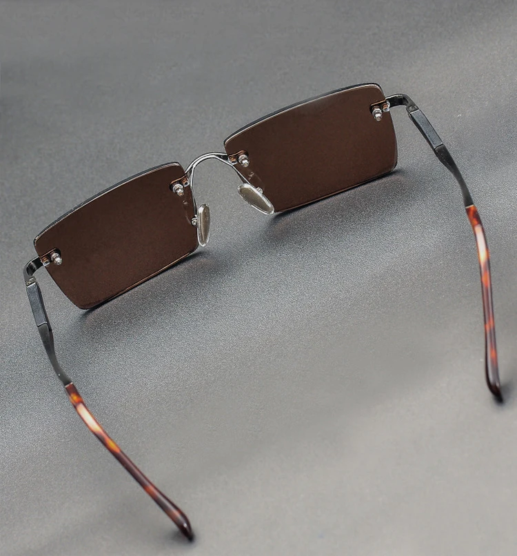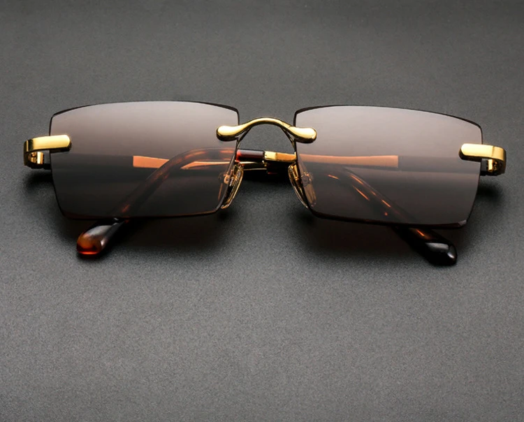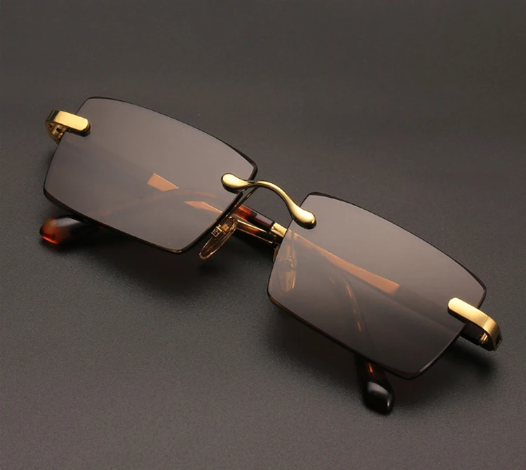 Rimless Sunglasses Brand Man Woman Acetate Metal Frame Natural Crystal Stone Rectangle Sun Glasses