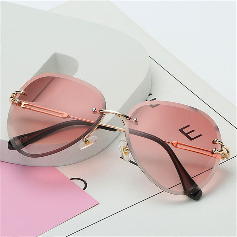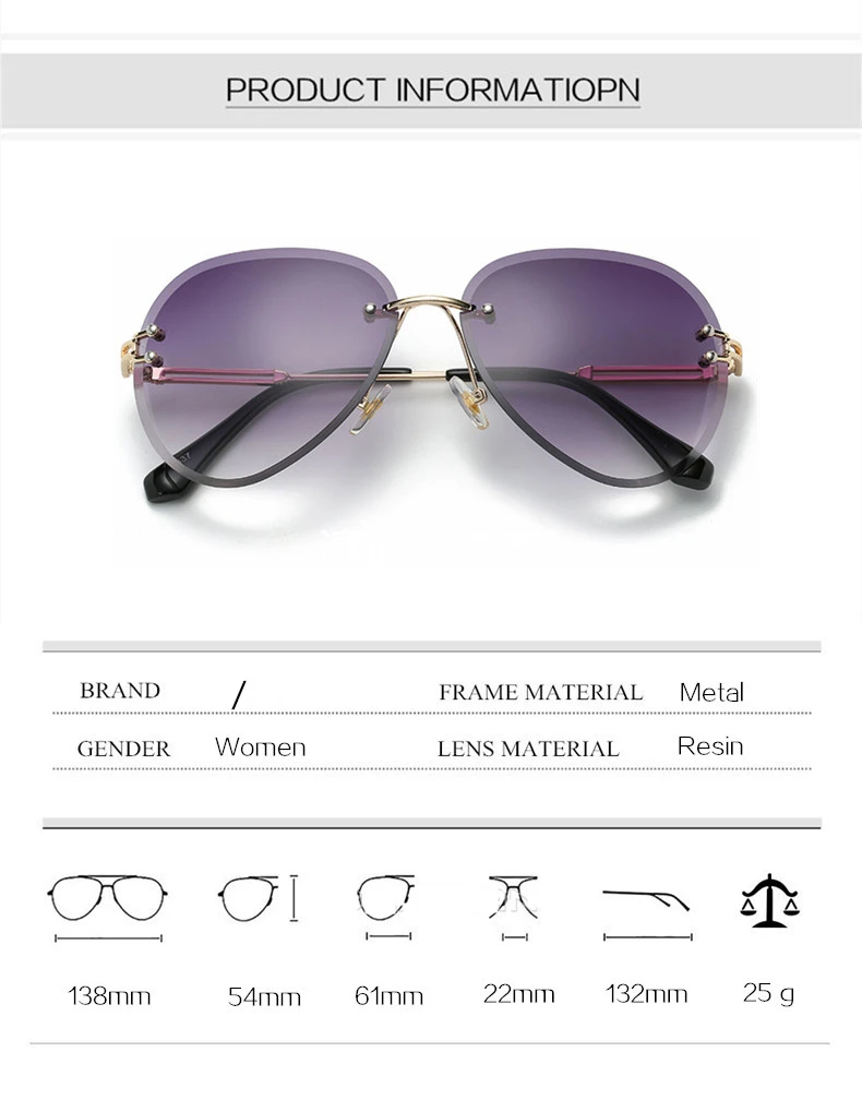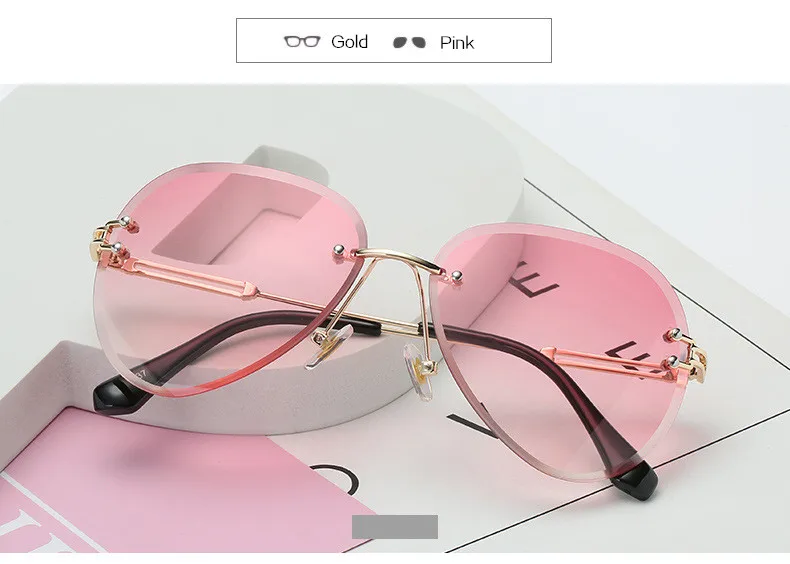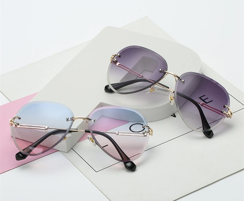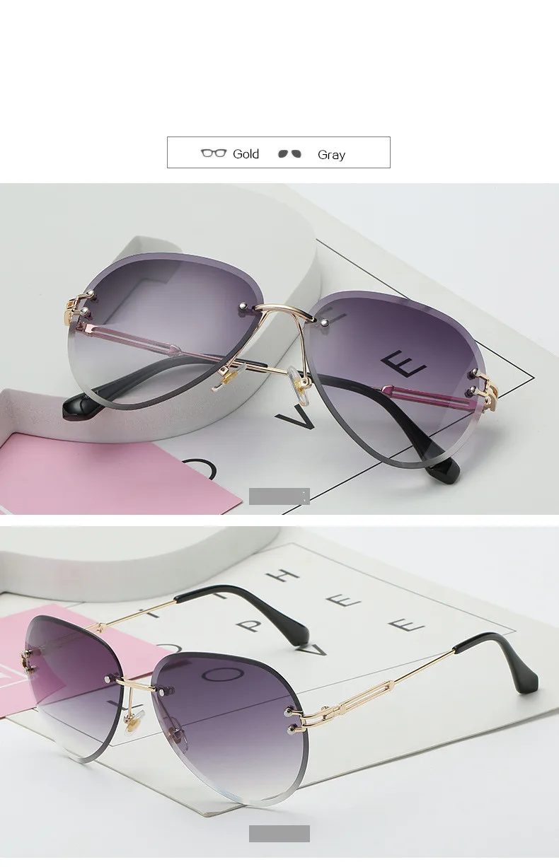 Rimless Sunglasses Women Brand Designer Sun Glasses Gradient Shades Cutting Lens Ladies Frameless Metal Eyeglasses UV400