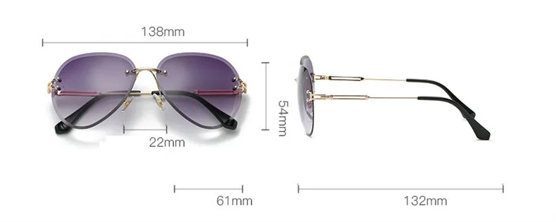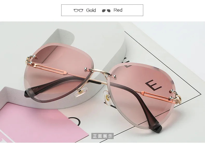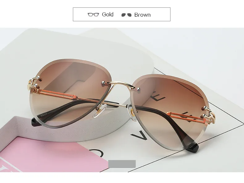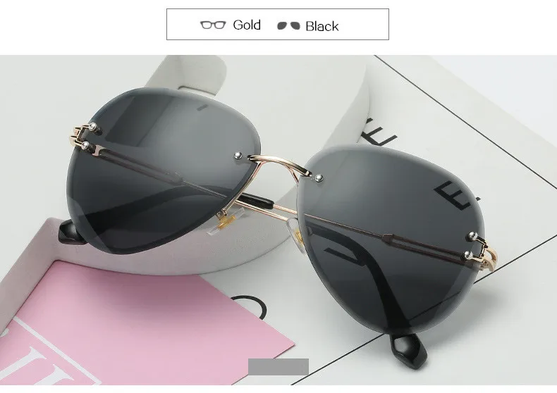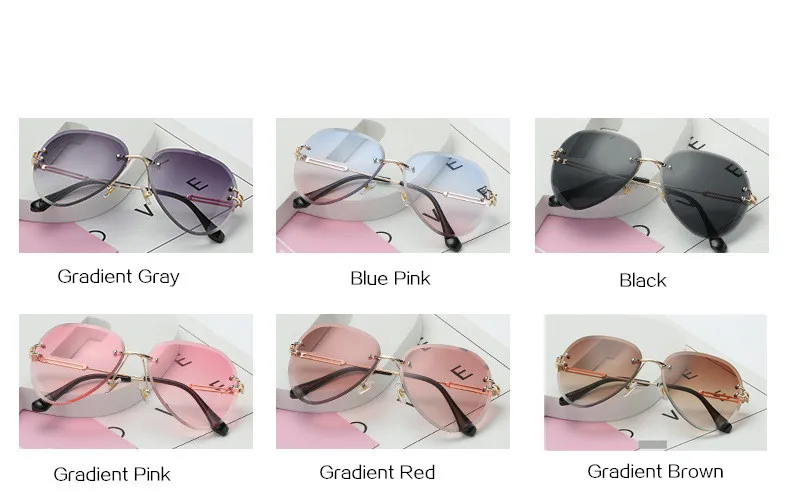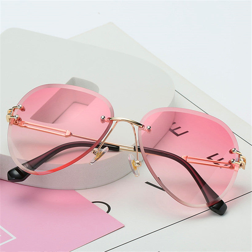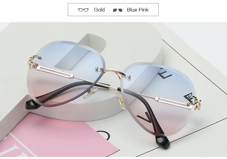 Rimless Sunglasses Women Brand Designer Sun Glasses Gradient Shades Cutting Lens Ladies Frameless Metal Eyeglasses UV400
