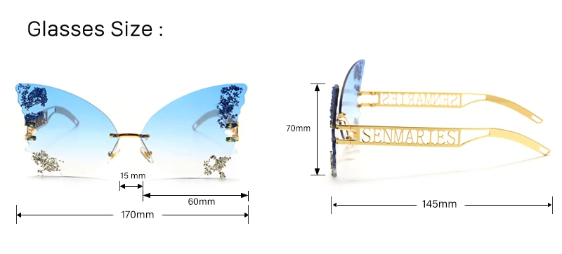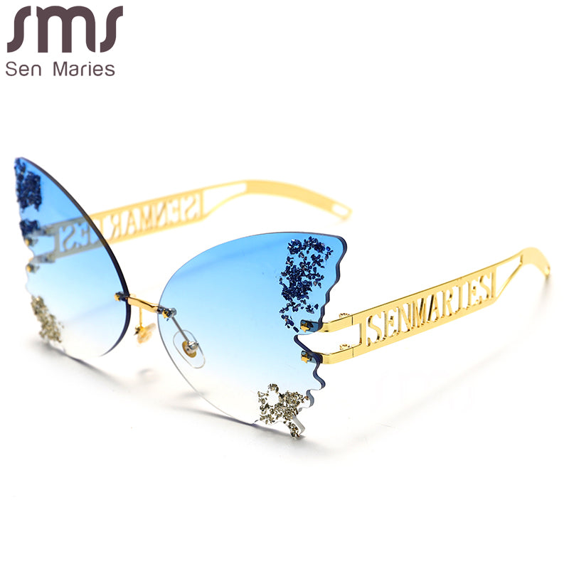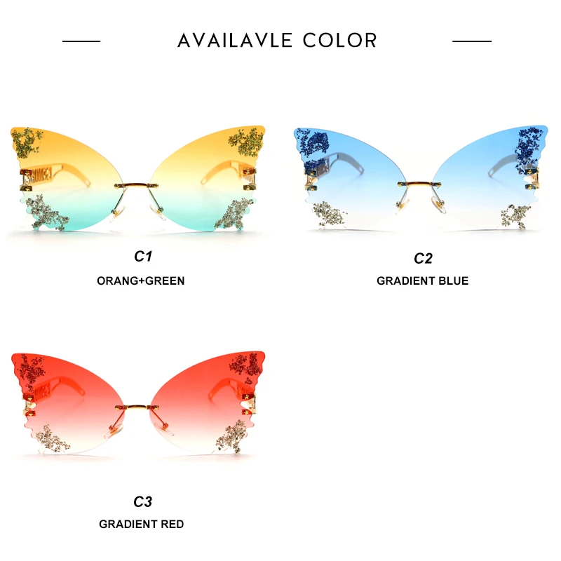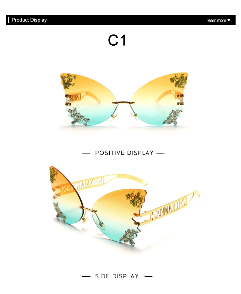Shiny Crystal Butterfly Sunglasses Women Metal Frame Sun Glasses Ladies Rhinestone Punk Rimless Eyeglasses UV400