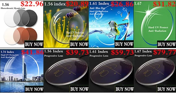 2)We offer the lenses as following for your choice.you can add the frame and one of these lenses to shopping cart,then pay together. We will make into finished prescription glasses and ship to you in 2-5 days
