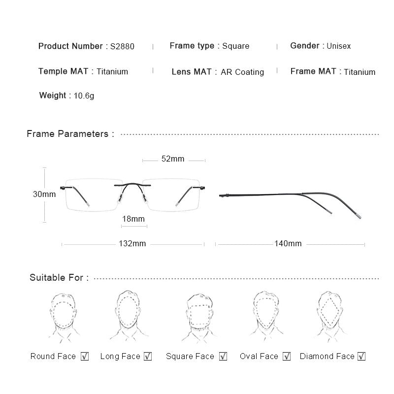 Titanium Alloy Rimless Glasses Frame Male Square Ultralight Man Frameless Myopia Optical Frames Eyewear S2880