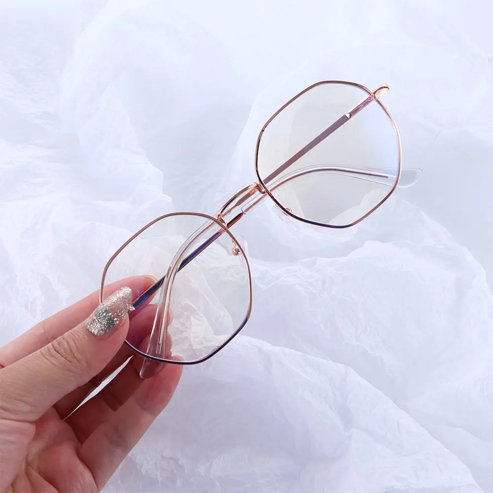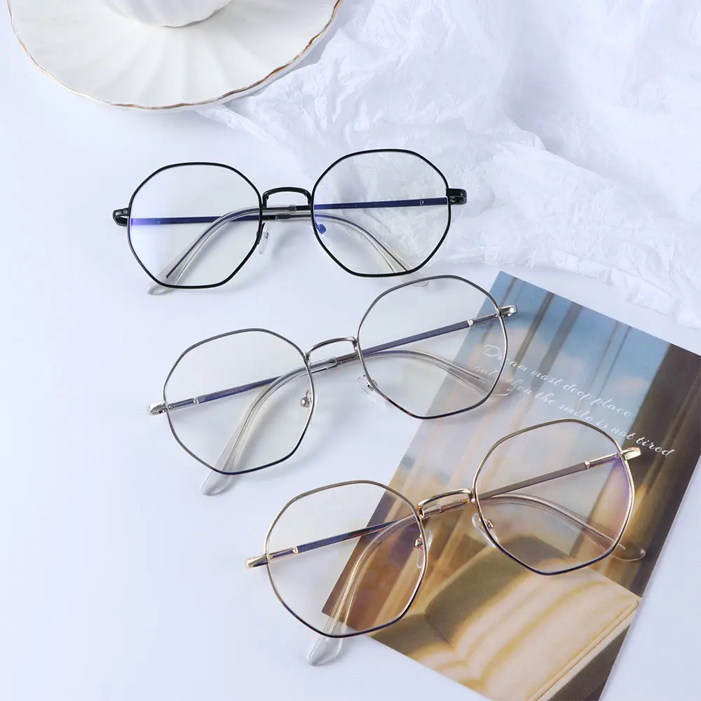 Trends Office Anti Blue Light Glasses Women Blue Blocking Computer Goggles Alloy Frame Women Octagonal Retro Frame All-match Men