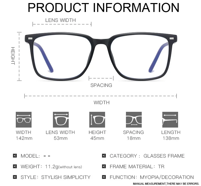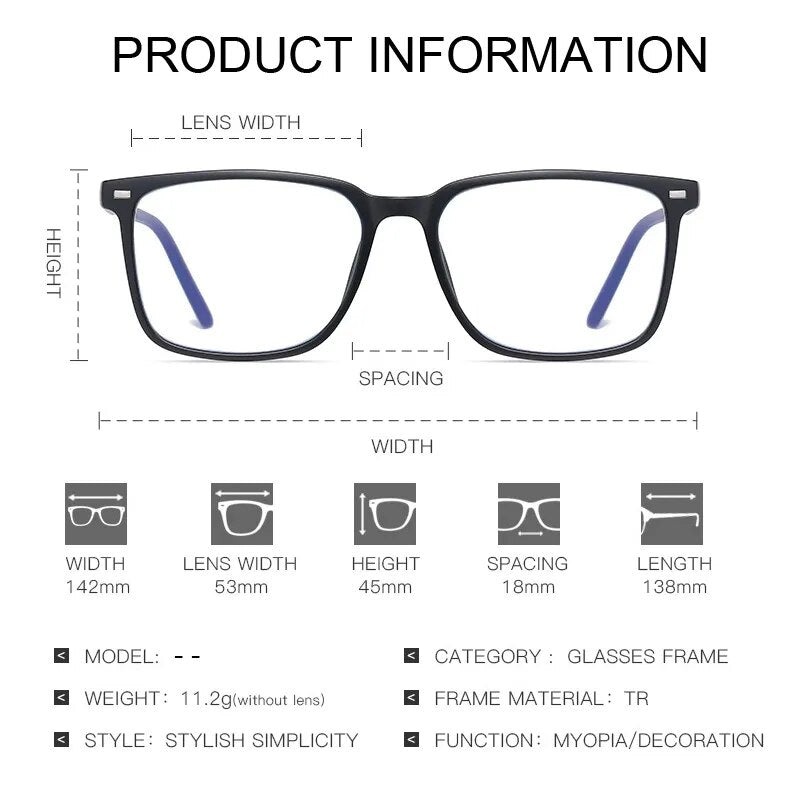 Ultra-light Fashion Flexible TR90 Square Glasses Men Women Transparent Optical Eyeglasses Frame Anti Blue Light Clear Spectacle