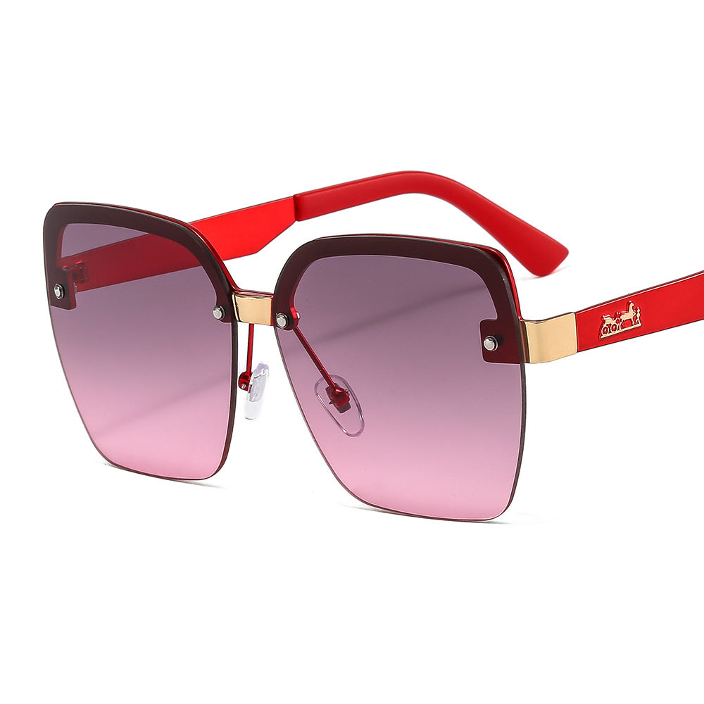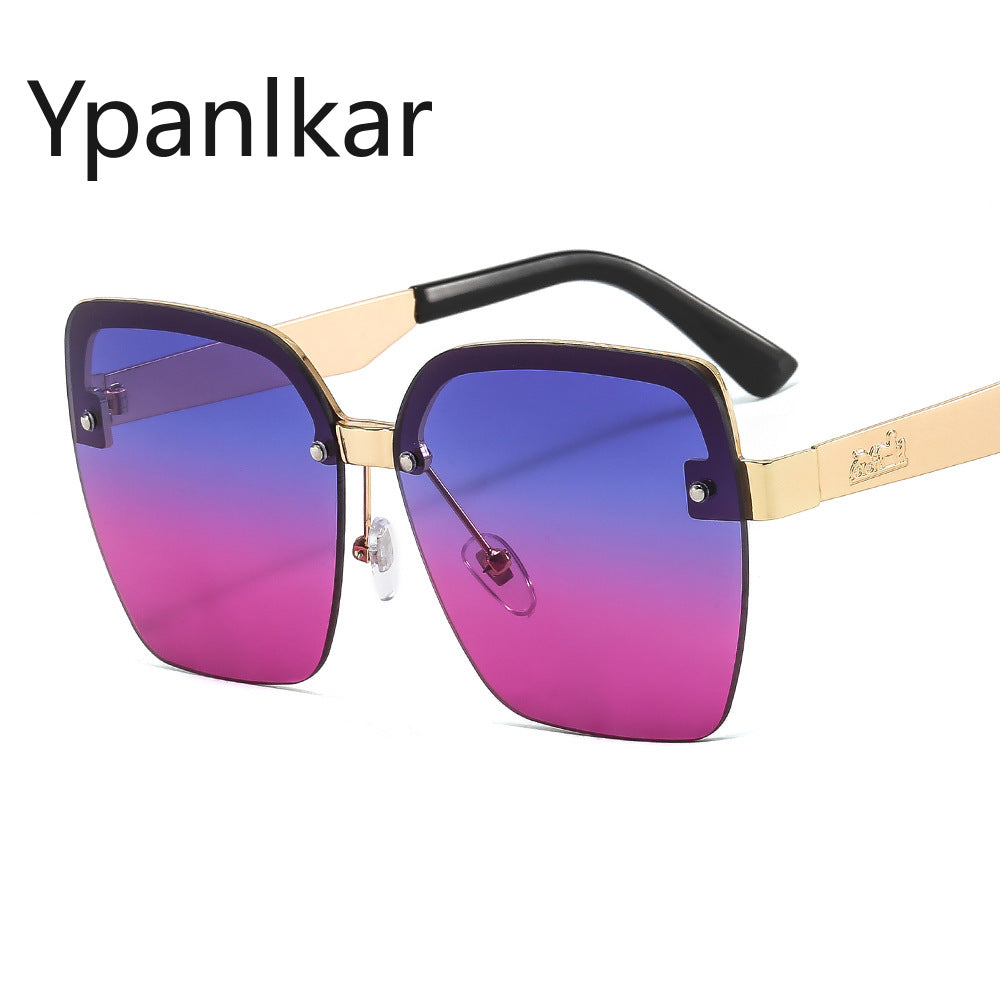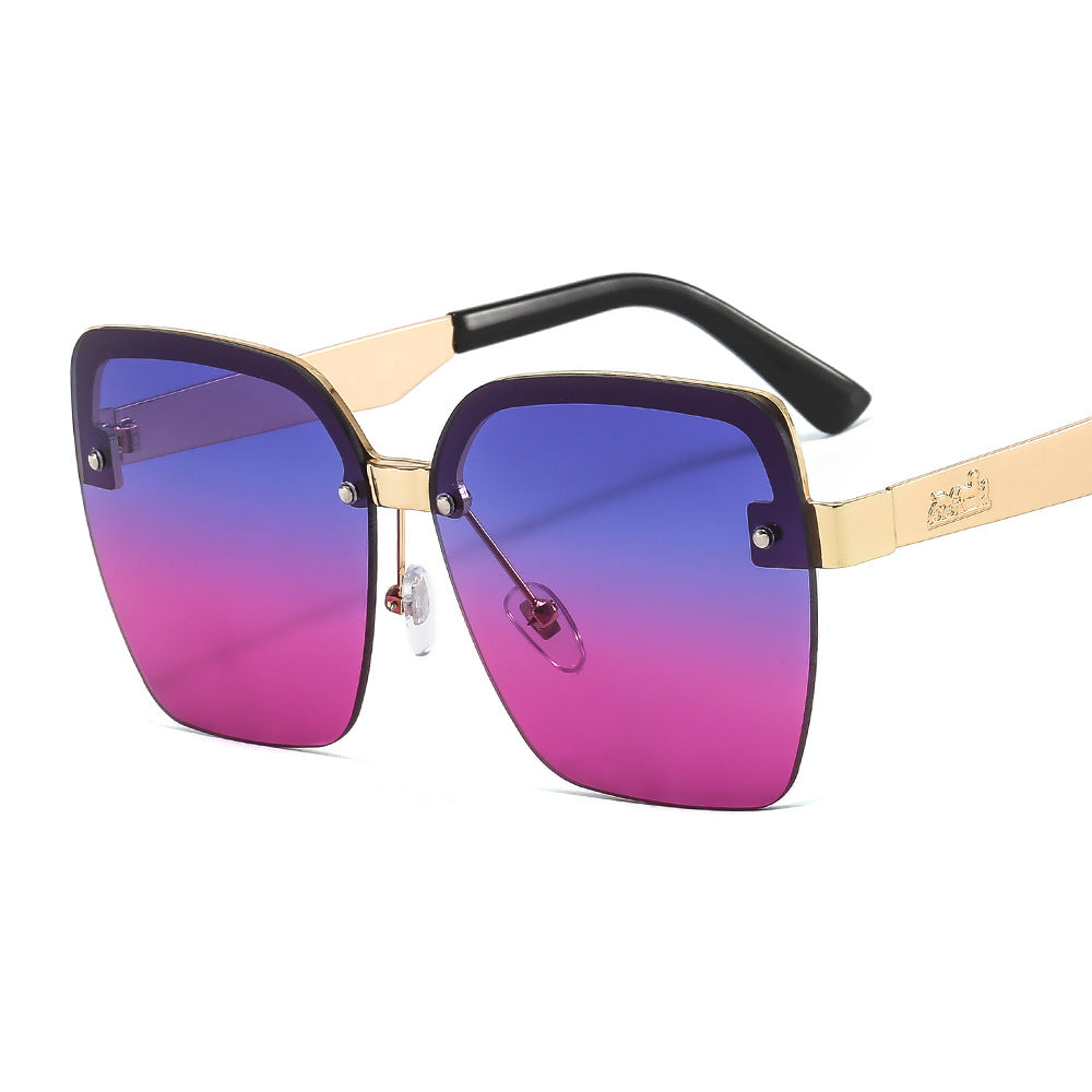UV400 Retro Oversized Square Sun Glasses Metal Semi-rimless Sunglass Women Men Half Metal Frame Street Eyewear