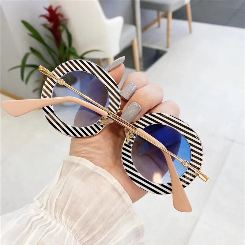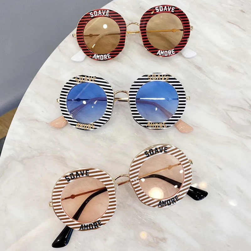 Vintage children Sunglasses Women Letter Round Glasses Stripe Frame Kids Eyewear Shades clear lens Uv400