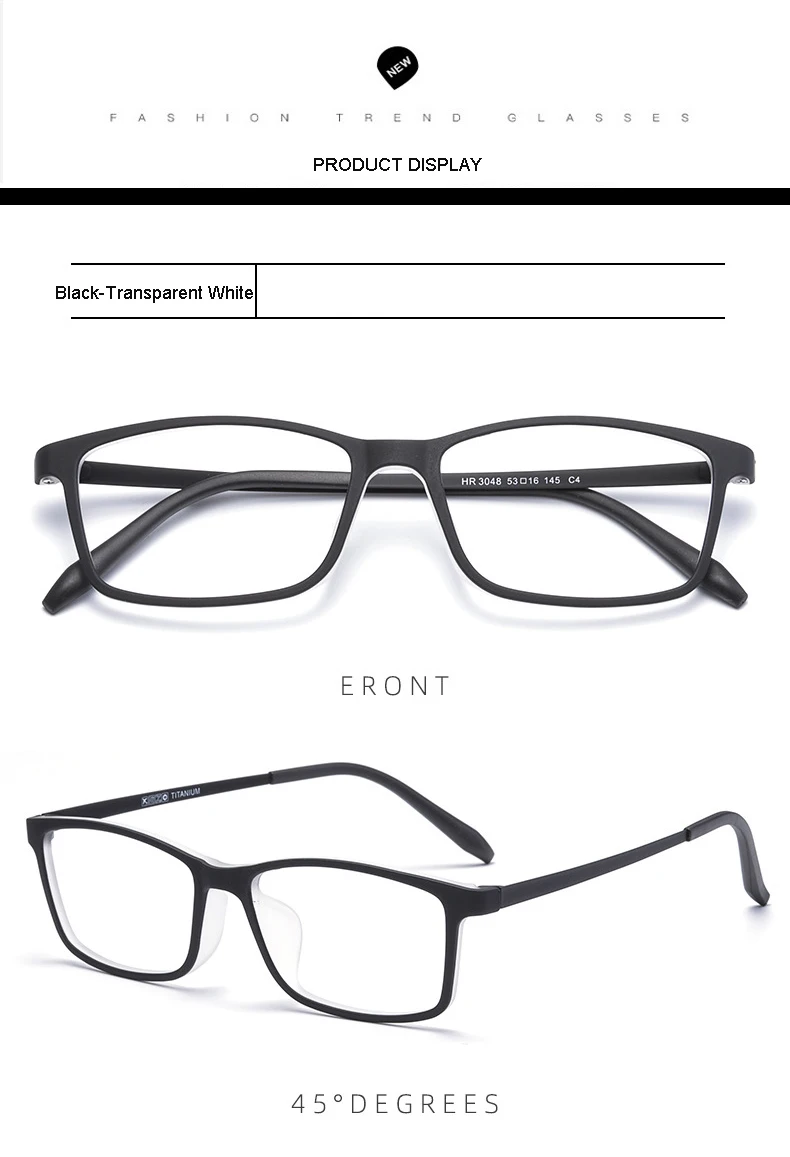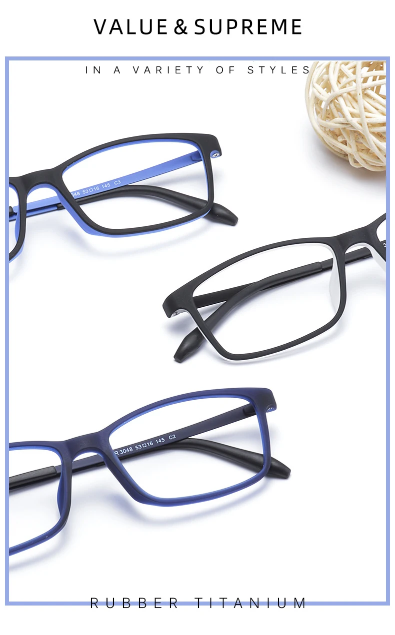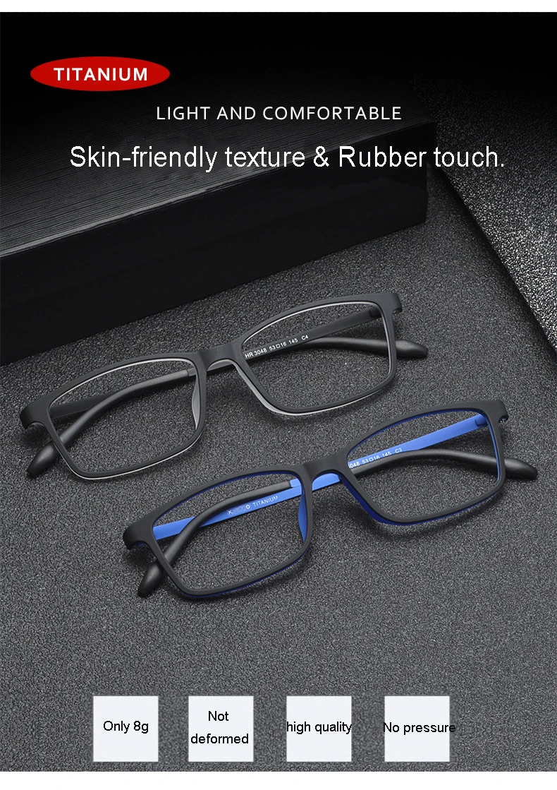 WIHODA Men's β Titanium + TR90 Square Myopia Glass Frames, Super Light Prescription Glasses Frame for Hyperopia Eyeglasses F3048