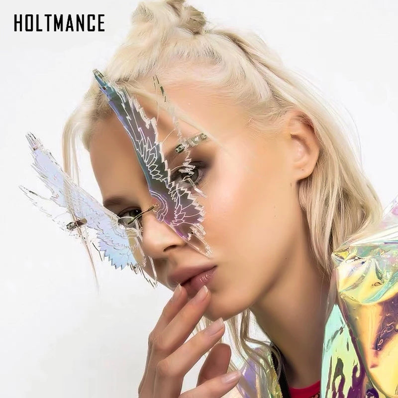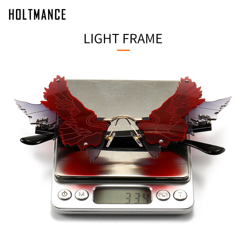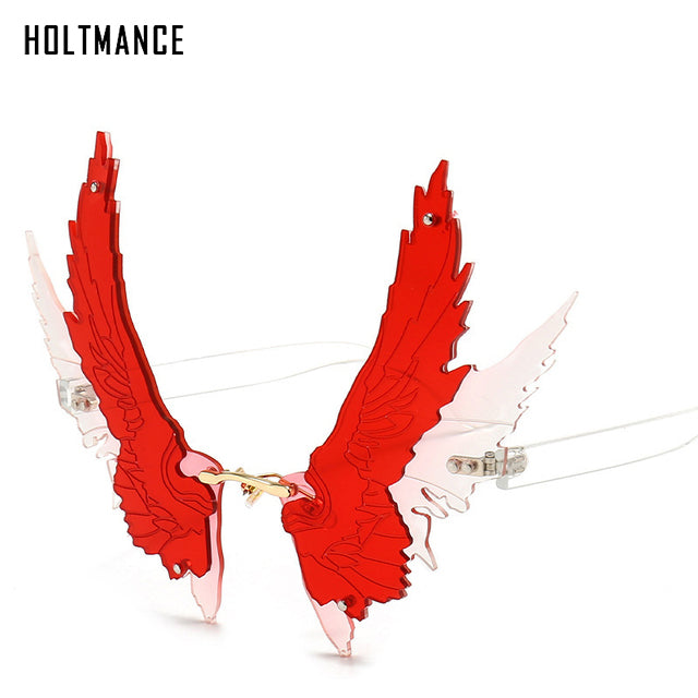Wings Rimless Sunglasses Women Unique Wing Frameless Sun Glasses Ladies Trendy Eagle Shaped Shades For Men UV400