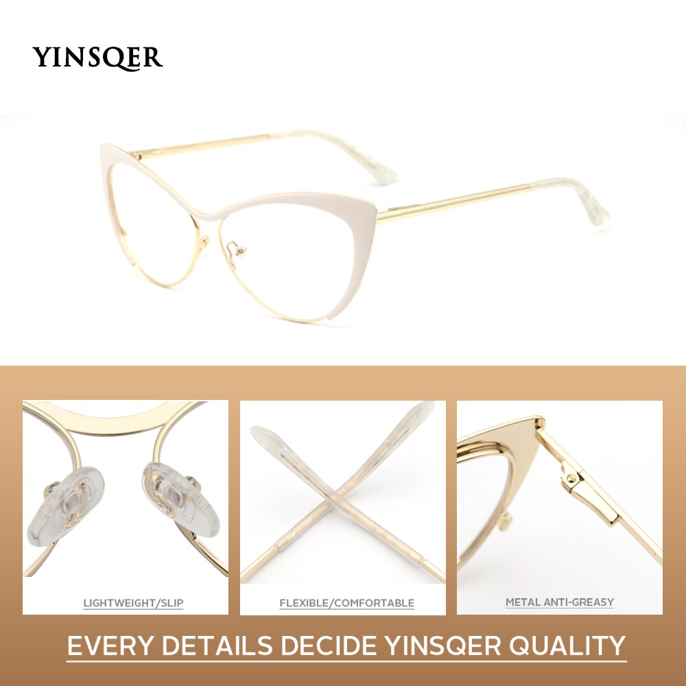 YINSQER 2023 Nearsighted Women Cat Eye Glasses Frame Clear Eyeglasses Frame Men Diopter Glasses Myopia Vintage Round Glasses