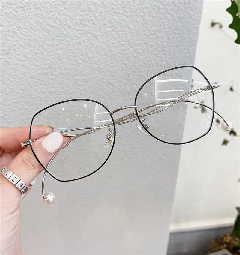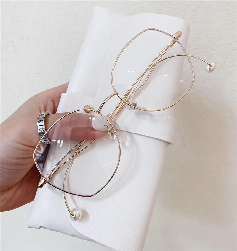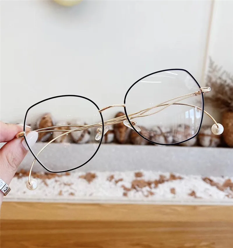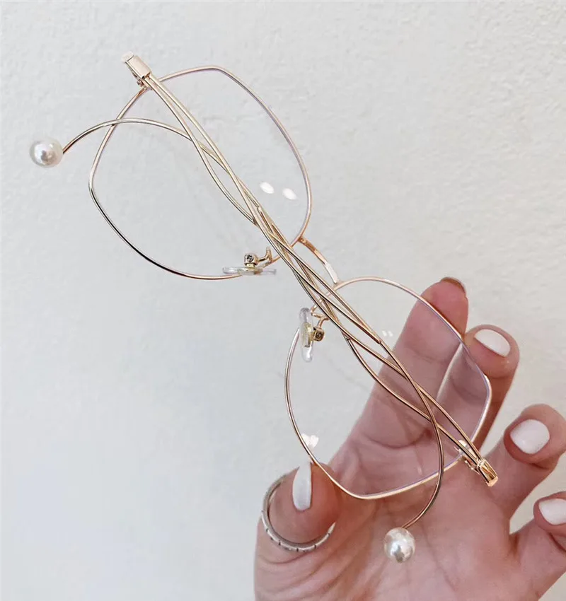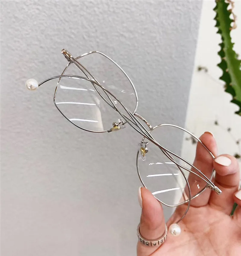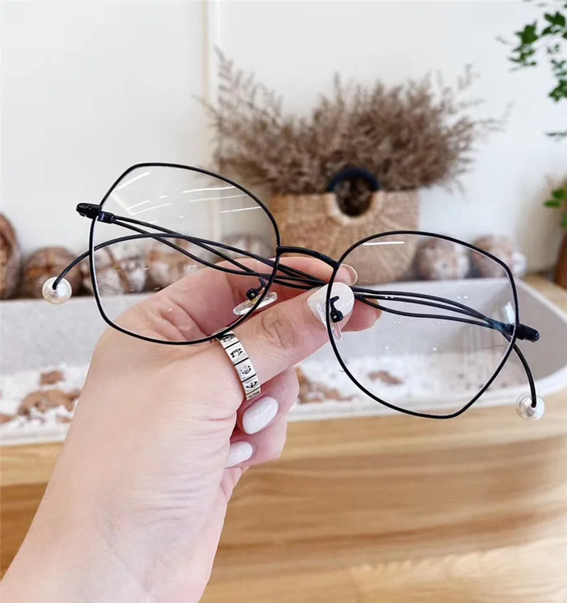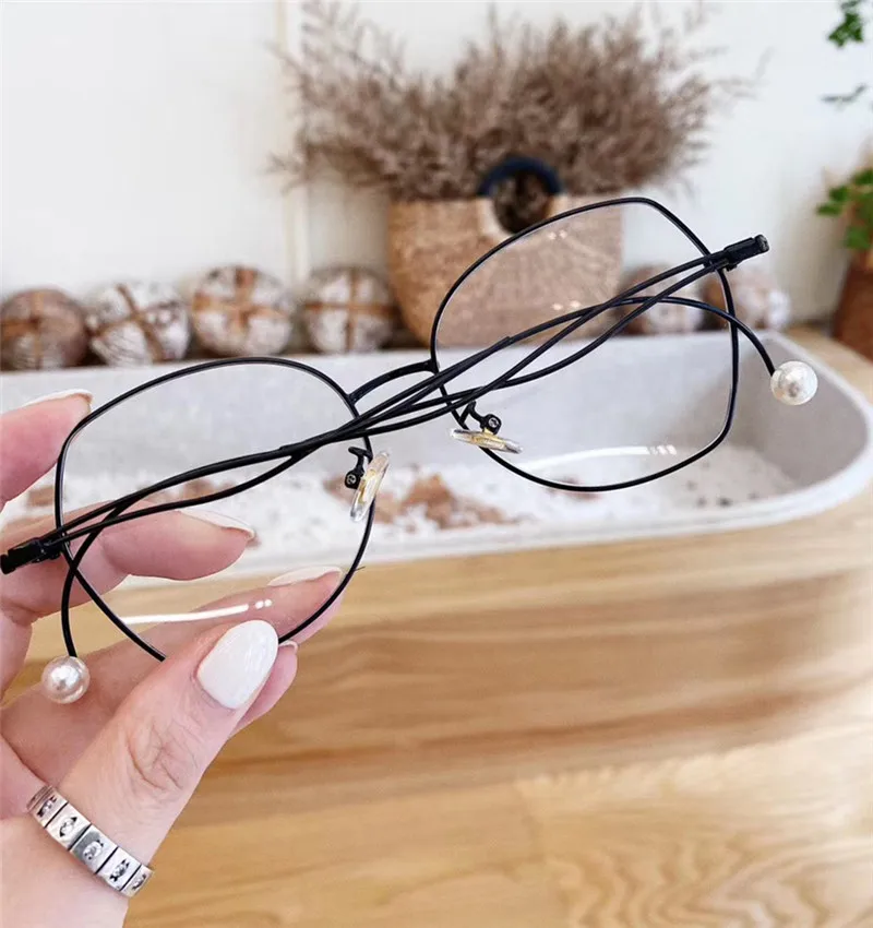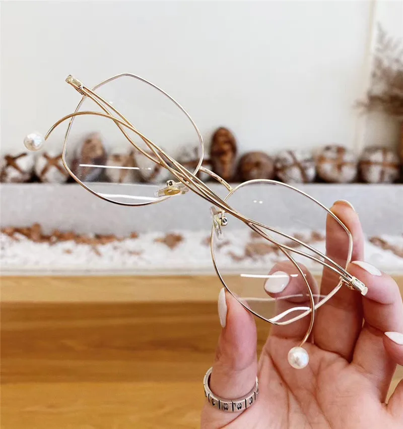 Anti-blue Light Glasses Frame Women Irregular Eyeglasses Unique Pearl Bent-leg Spectacle Frame Fashion Myopia Frames