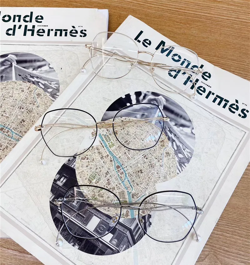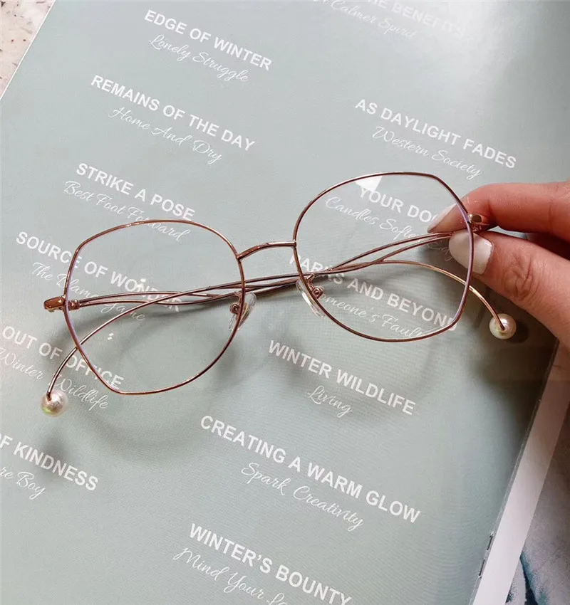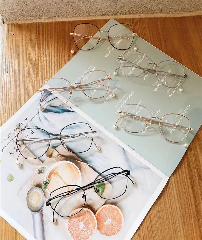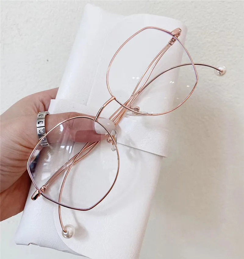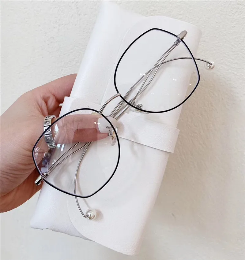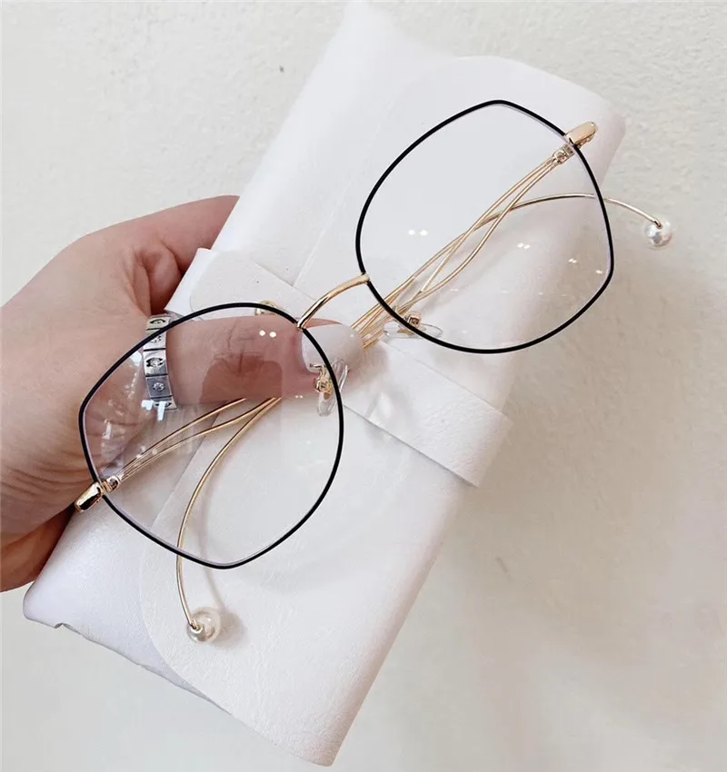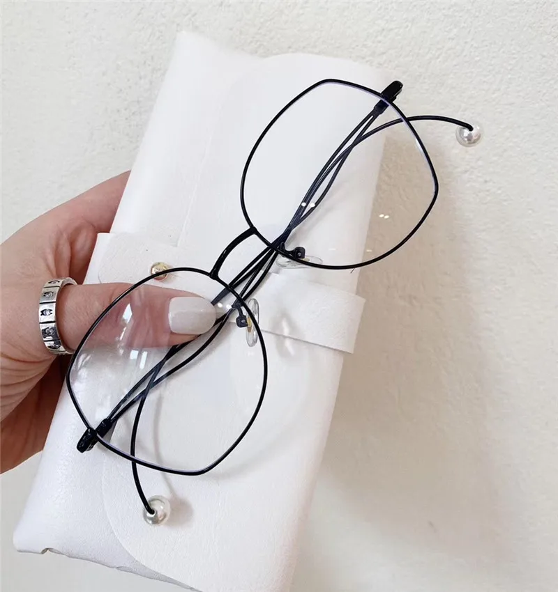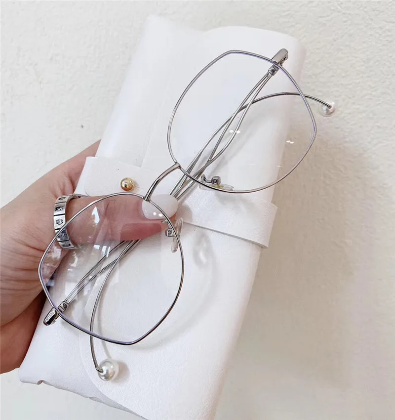 Anti-blue Light Glasses Frame Women Irregular Eyeglasses Unique Pearl Bent-leg Spectacle Frame Fashion Myopia Frames