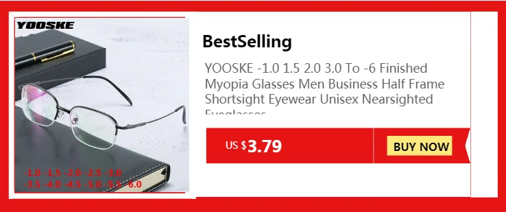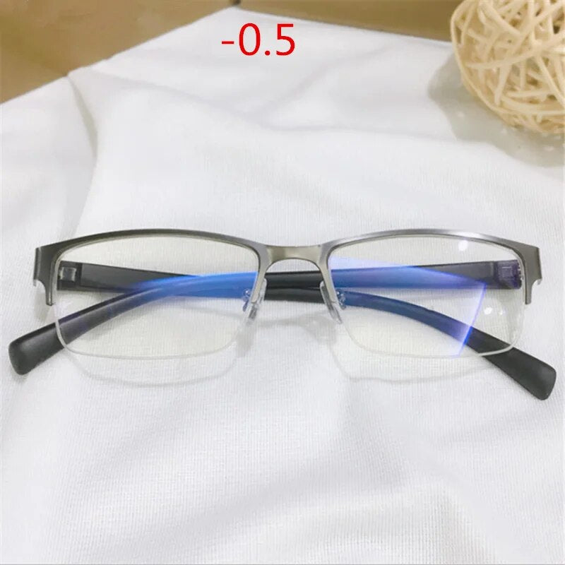 YOOSKE Half Frame Finished Myopia Glasses Men Business Prescription Eyewear Women Shortsighted Diopter -0.5 -1 1.5 -2 2.5 To-6