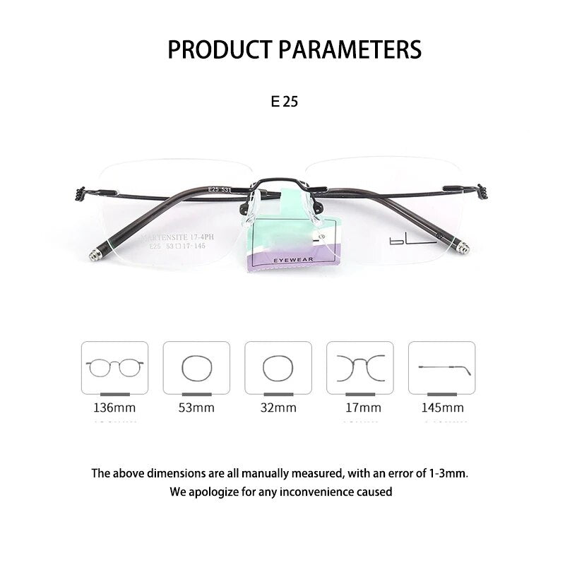 Rimless Business Eyeglasses Men Luxury Business Spectacle Super Light Eyewear Optical Prescription Eyeglasses Myopia Frame E25