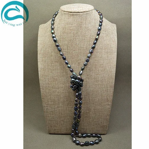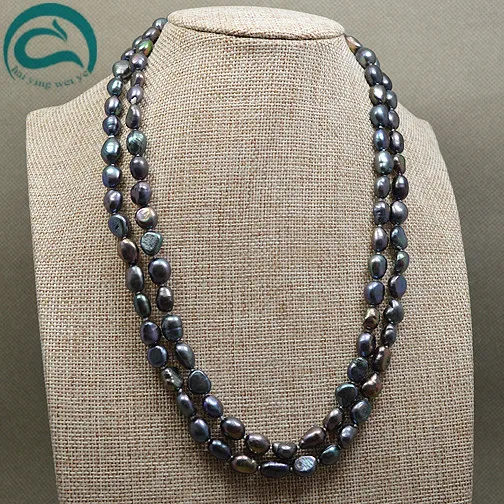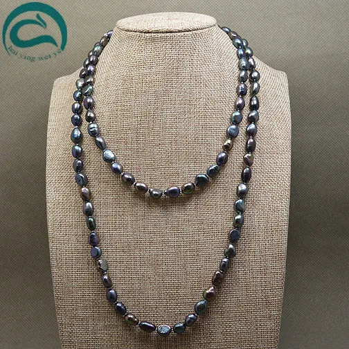 120cm Long Pearl Necklace,7-10mm Peacock Black Color Natural Pearl Necklace,Perfect Birthd Chirstmas Women Gift