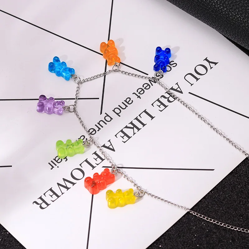Cute Cartoon Bear Chain Necklaces, Candy Color Pendant For Women&Girl Daily Jewelry Party Gifts