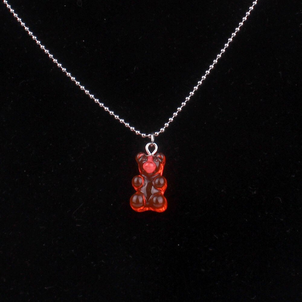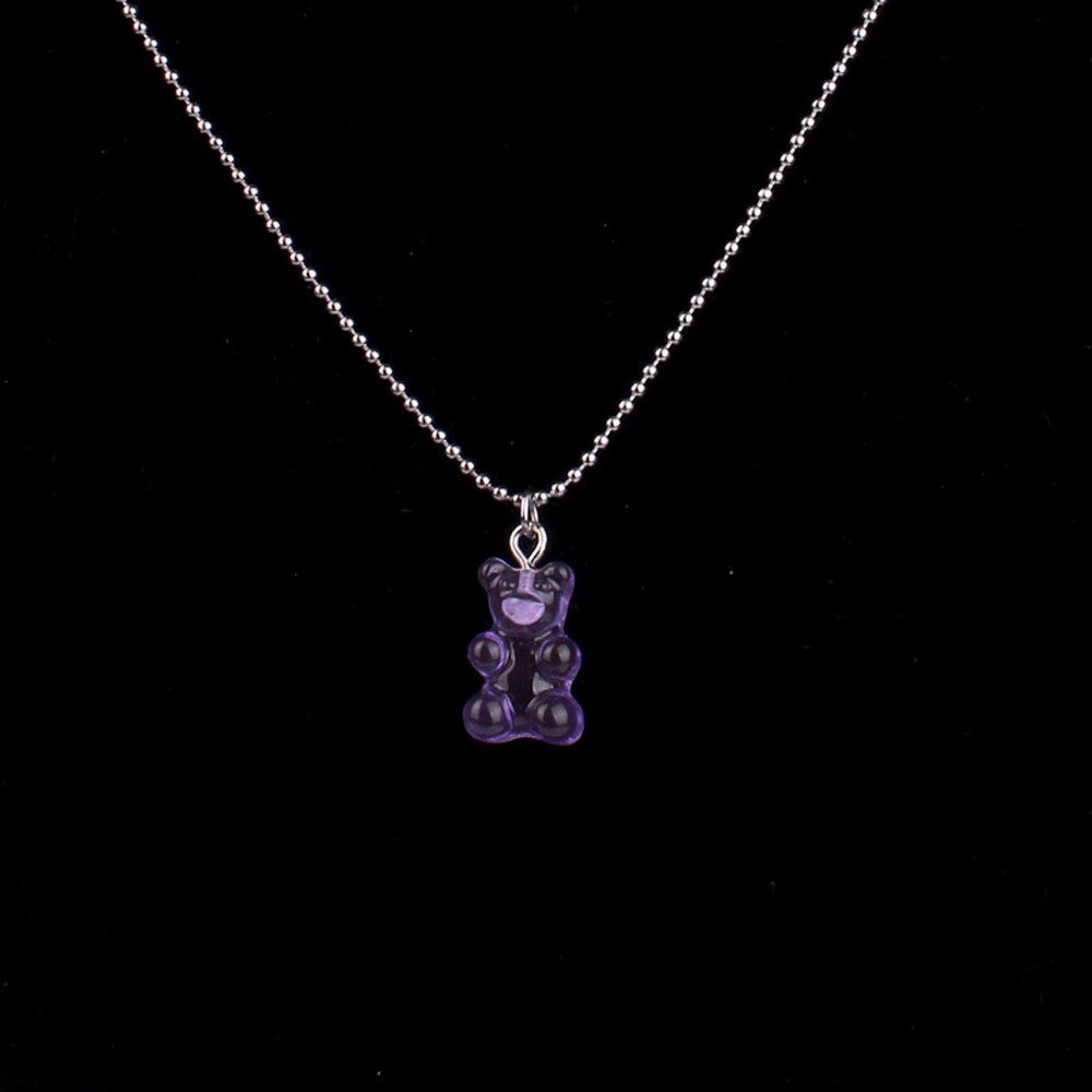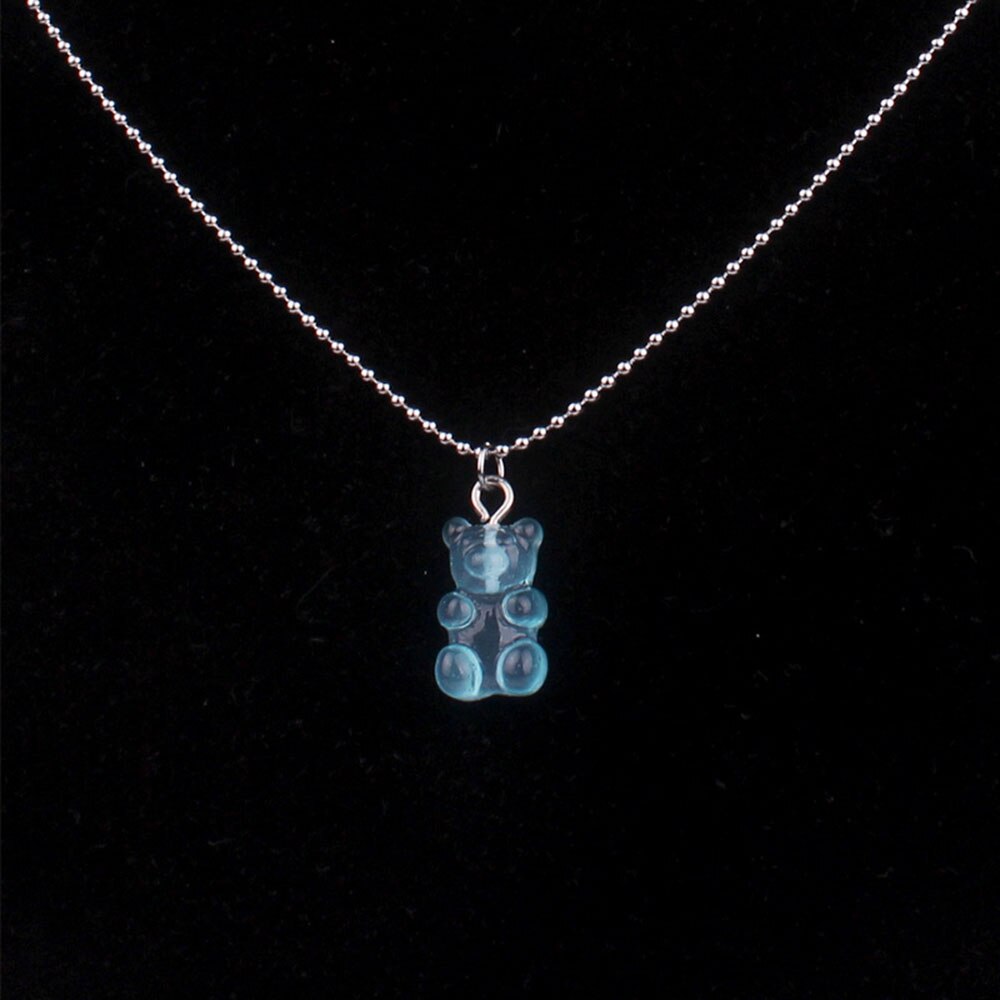 Fashion Multicolor Transparent Bear Necklace Cute Candy Color Resin Gummy Bear Pendant Necklace Women Jewelry