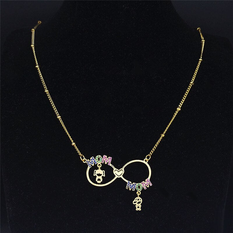 Mom Son Daughter Stainless Steel Zircon Copper Chain Necklace for Women Golod Color Statement Necklaces Jewelry bijoux