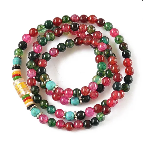 Natural 6mm Colorful Agate beaded Bracelet Tibetan Buddhist 108 Prayer Beads Necklace Gourd Mala Prayer Bracelet for Meditation