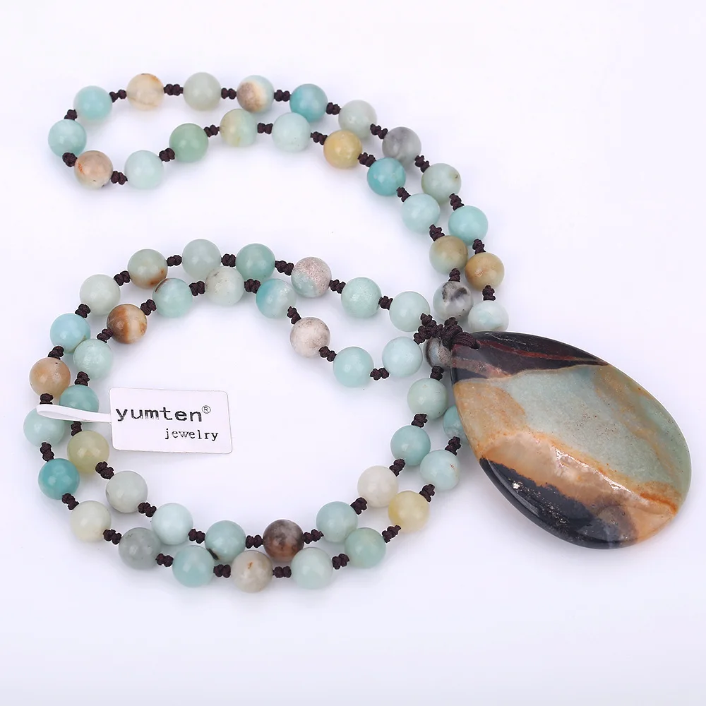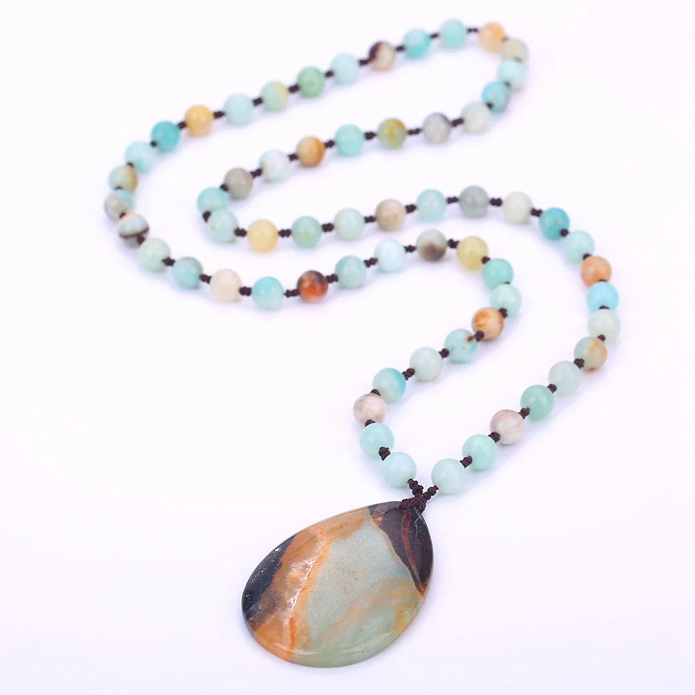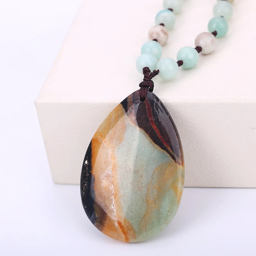 Natural Gem Colorful Agate Jade Necklace Pendant Amulet Chakra Reiki Healing Wicca Crystal Pink Quartz Lapis Lazuli Amber Yoga