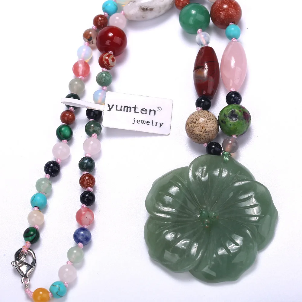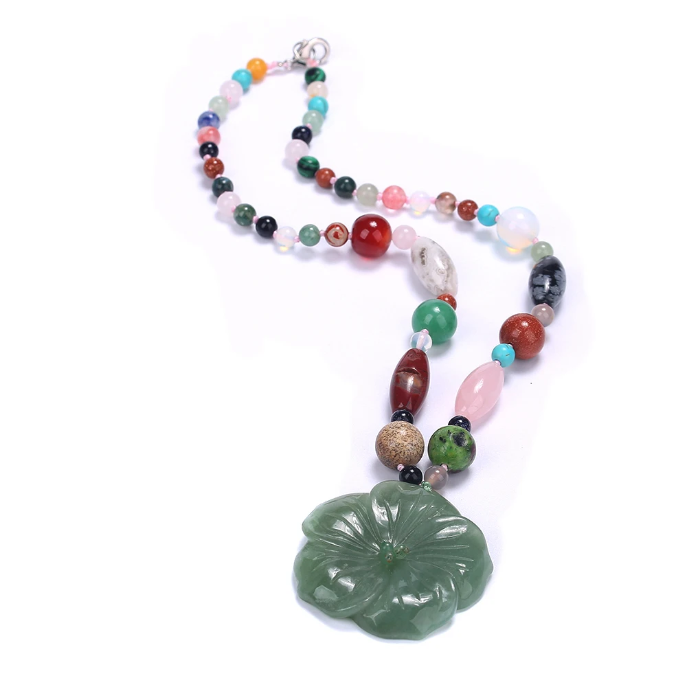 Natural Stone Pendant Agate Jade Pendant Necklace Colorful Beads Necklace 100% Natural Gemstone Fine Jewelry Gift For Women Love