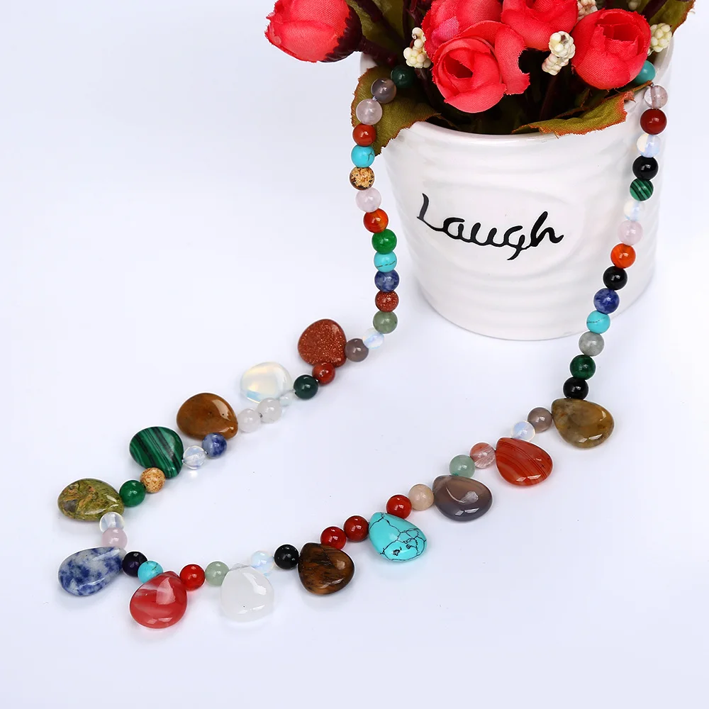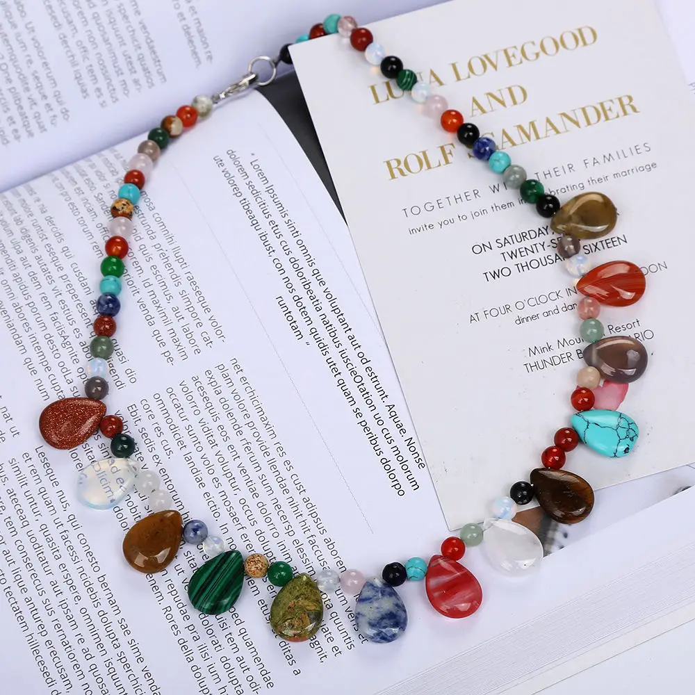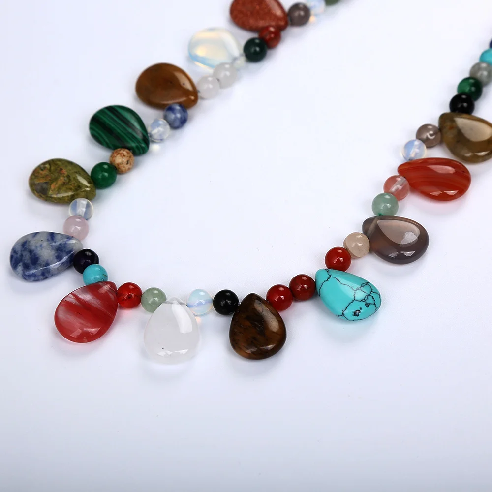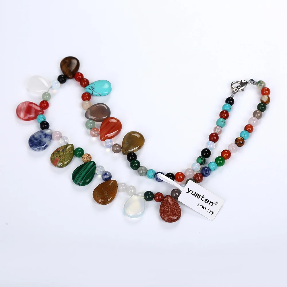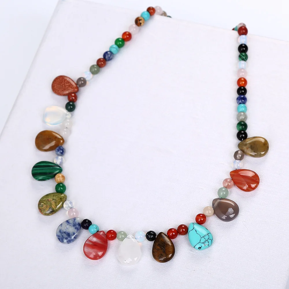 Natural Stone Rainbow Colorful Crystal Necklace Water Drop Pendant Chain Bead Women Jewelry Initial Feather Mens Necklace Chain