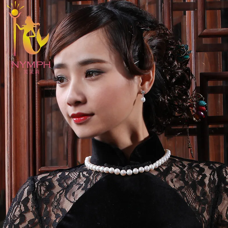 Pearl Jewelry Natural Pearl Necklace Choker Necklace White 9-10mm Round Pearl Wedding Gift For Women X913