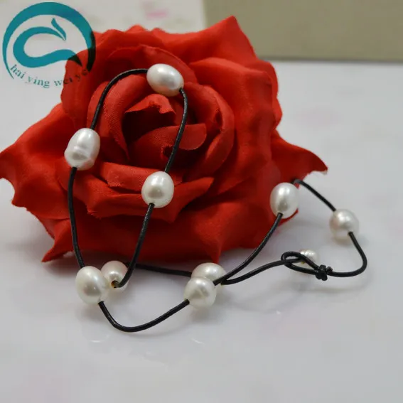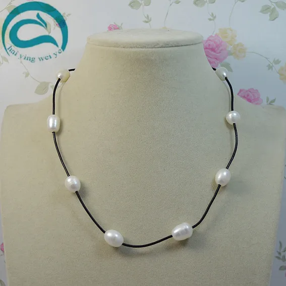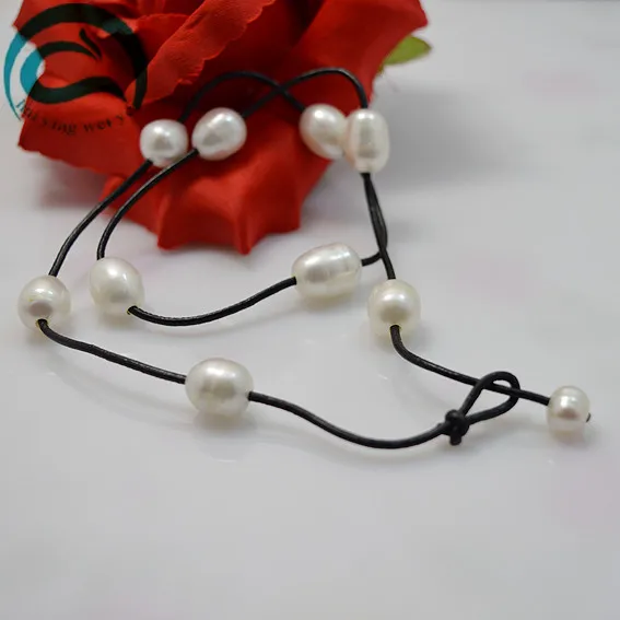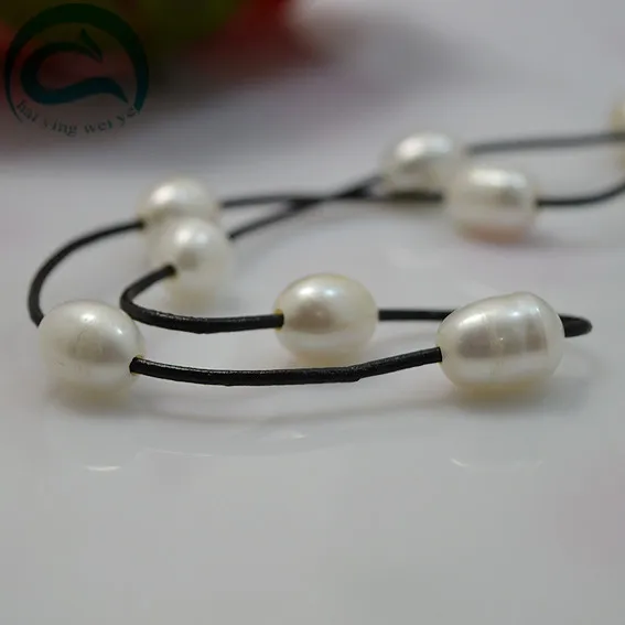 Real Leather Pearl Necklace Natural White Color AA 10-11MM Pearl Black Leather Necklace Woman Fine Jewelry