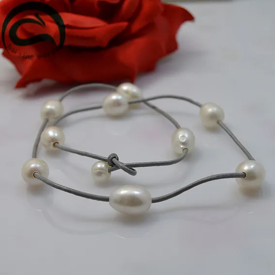 Real Leather Pearl Necklace Natural White Color AA 10-11MM Pearl Gr Leather Necklace Woman Fine Jewelry