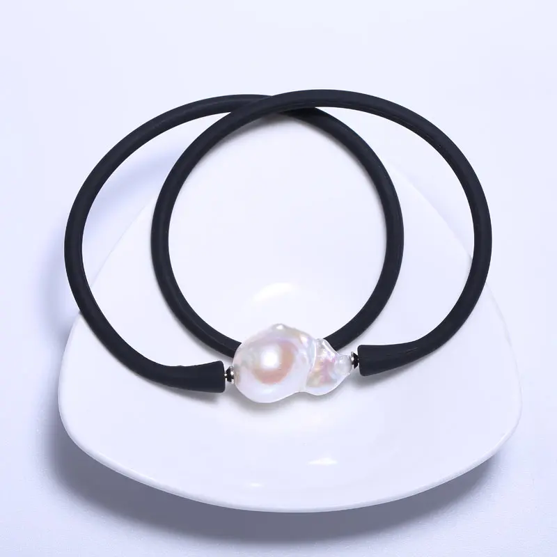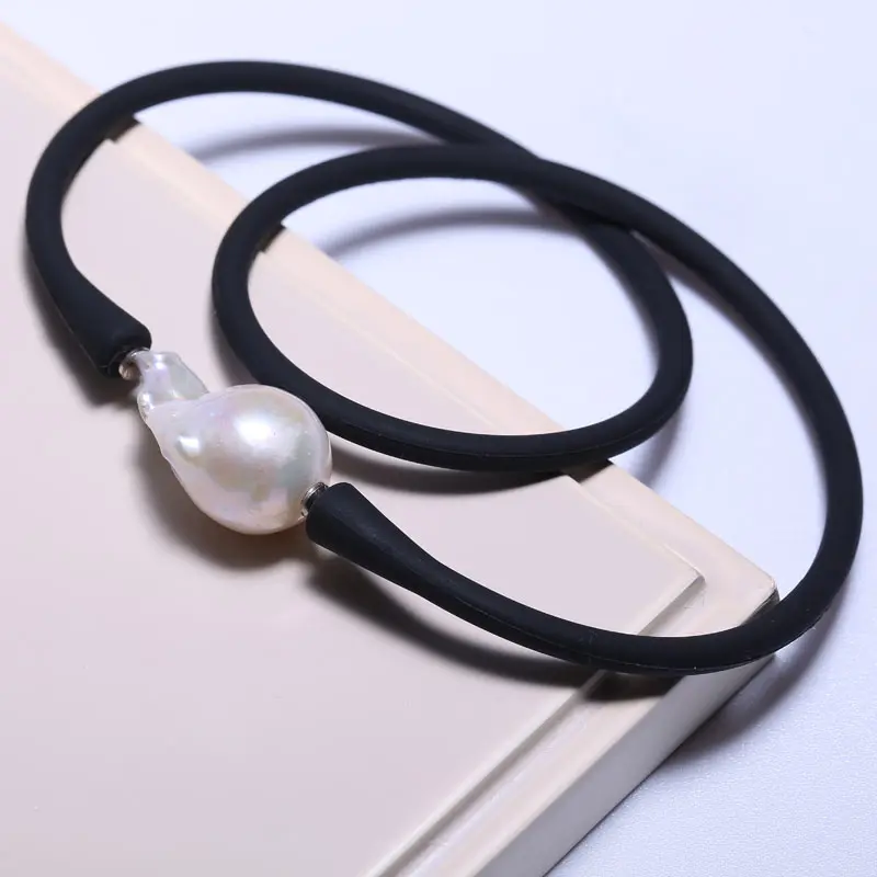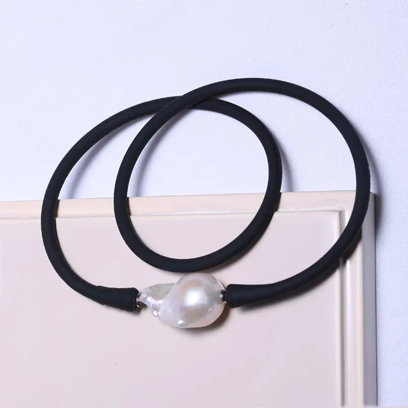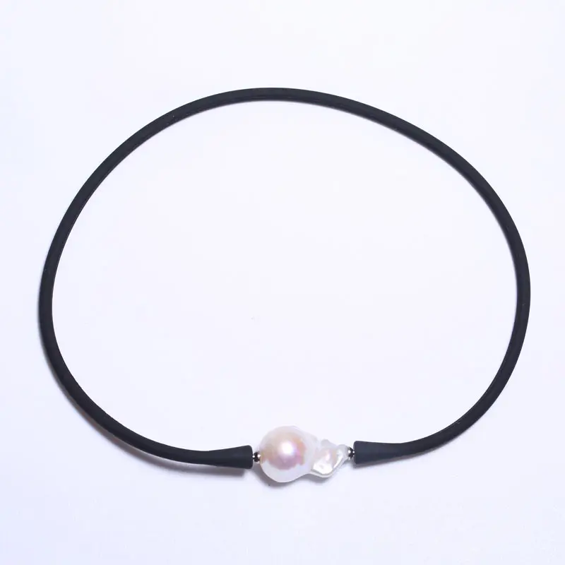 The Baroque Silicone Cord Necklace Pearl Size 15 mm Recreational Style