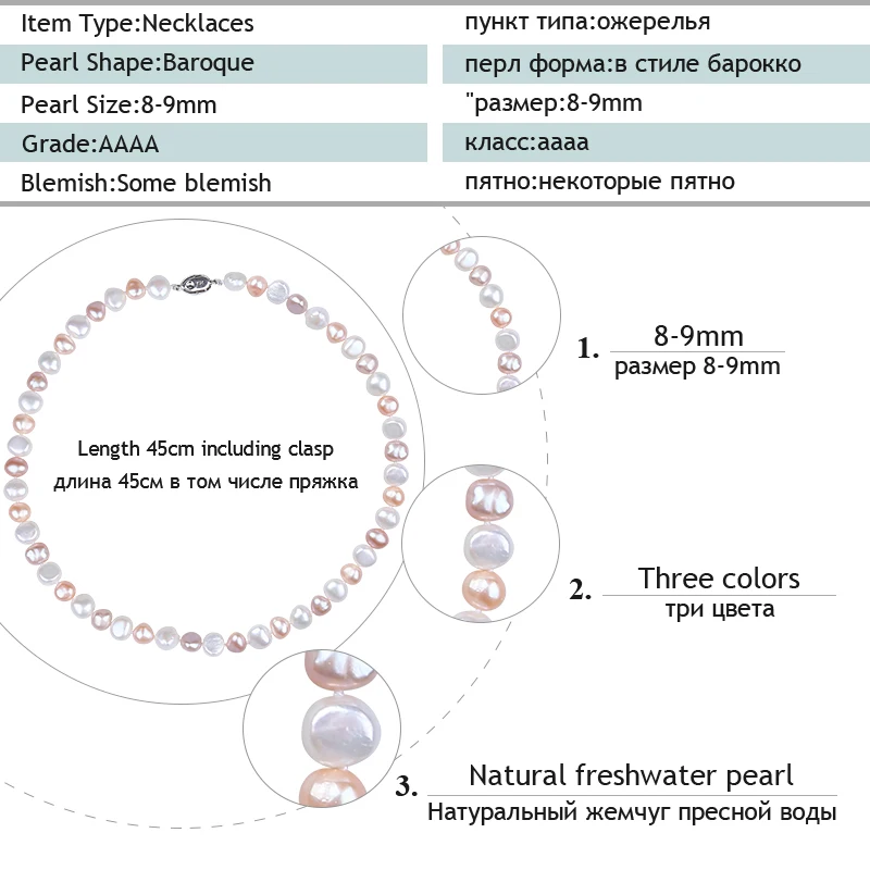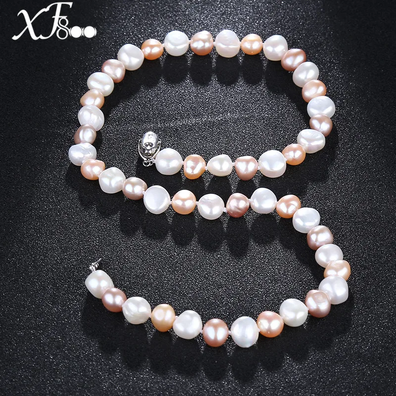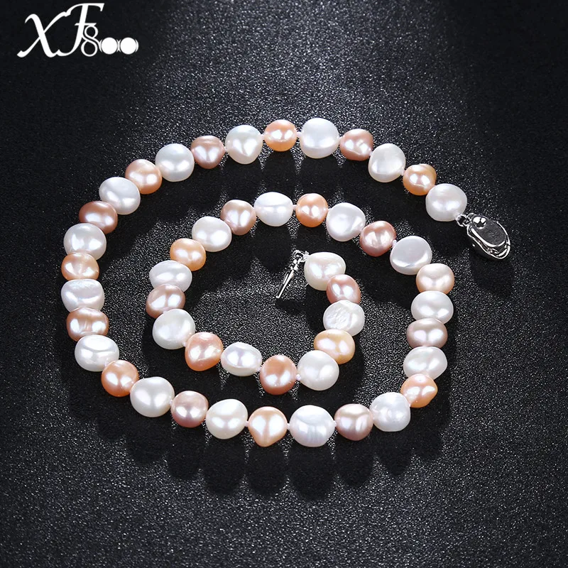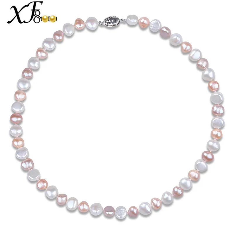 [XF800]Baroque Pearl Necklace Natural 8-9mm Mix Color Choker Necklace Party Fine Christmas gifts Fine Jewlery [TX212]