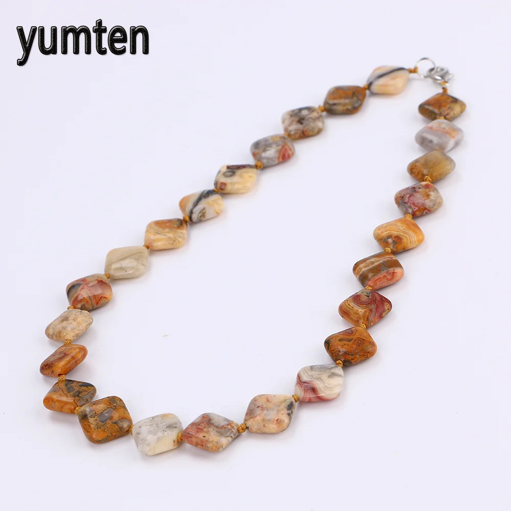 Colorful Jade Power Necklace Natural Stone Square Crystal Men Jewelry Colar Masculino Bohemian Chakra Wholesale 5 PCS