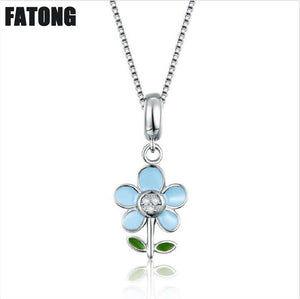925 sterling silver sweet flower Korean necklace female epoxy jewelry J0280