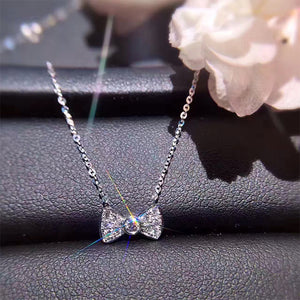 ANI 18K White Gold (AU750) Pendant Necklace 0.11 ct Real Diamond Bow-knot Pendant Chain Necklace for Women Engagement Custom
