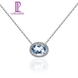 Lohaspie Solid 18K White Gold 1.27ct Natural Gemstone Aquamarine & Diamonds Necklace For Women Fine Diamond-Jewelry 18 Inches