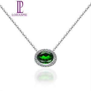 Lohaspie Solid 18K White Gold 1.40ct Natural Gemstone Chrome Diopside & Diamonds Necklace For Women Fine Diamond-Jewelry 18 Inch