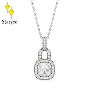 Test Positive Cushion 1.1ct Moissanite Halo Solitaire 18K White Gold Necklace Pendant Fine Jewelry For Women